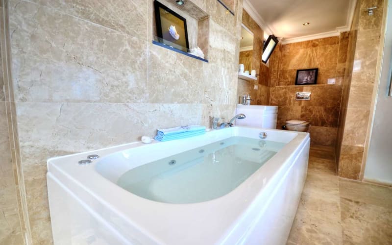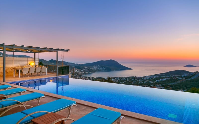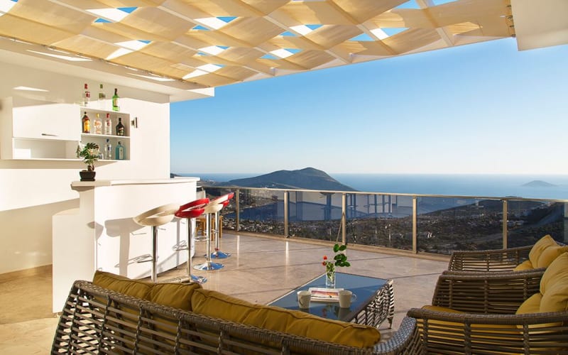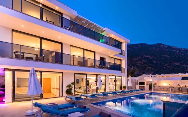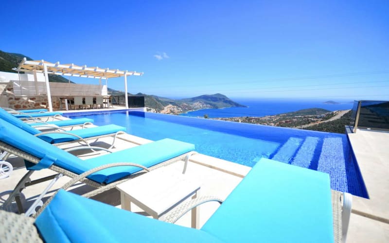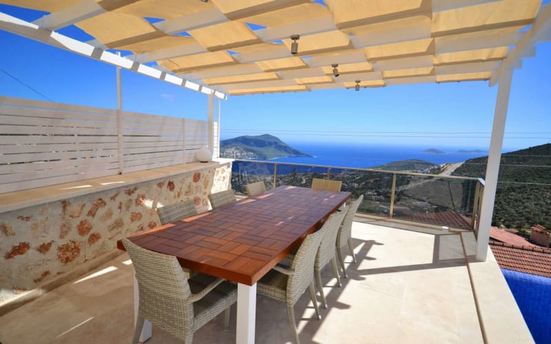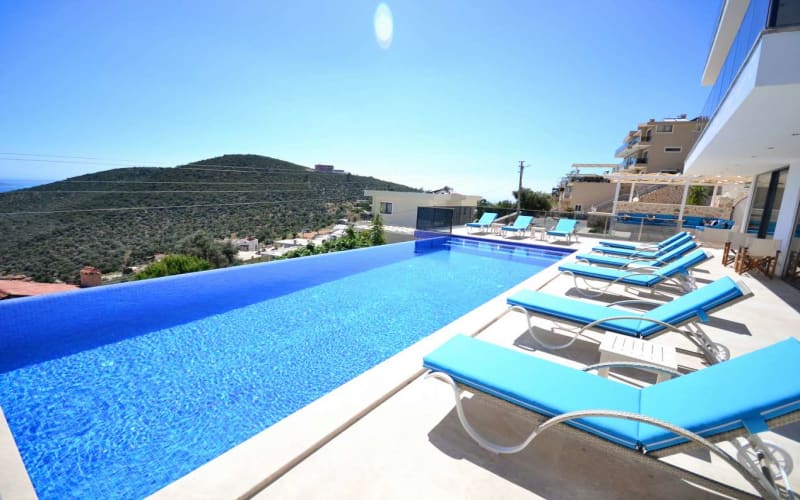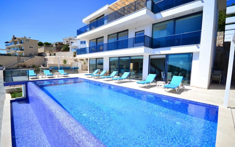 Antalya'nın eşsiz güzelliğe sahip gözde tatil destinasyonlarından olan Kalkan'ın Akbel mevkiinde yer alan Villa Ela, hem konforlu hem de lüks villalarımızdan biridir. Eşsiz panoramik deniz manzarasına sahip villamızın tüm odalarından denizin cazibesine dalabilirsiniz. 12 kişilik konaklama kapasite sayesinde kalabalık aileler ya da arkadaş grupları için en ideal villalarımızdan biri olan Ela, konforlu eşyalar ile döşenmiştir.İhtiyacınız olan tüm eşyalar tatiliniz boyunca hizmetinizde olacak olan villamızda rahat edeceğinizden şüpheniz olmasın. Her bir yatak odasında yer alan özel banyonun dışında 2 adet yatak odası içerisinde her an keyif yapabileceğiniz jakuzi yer almaktadır. En güzel sohbetlerinize ve keyifli dakikalarınıza tanıklık edecek deniz manzarasına sahip, oturma grubu ve bar olan çatı terasımız ile tatilinizi unutulmaz kılacaksınız.