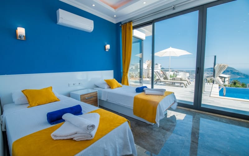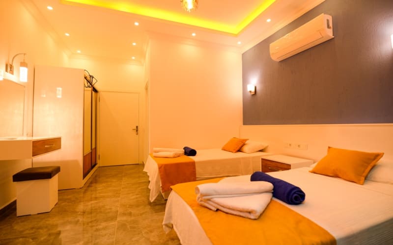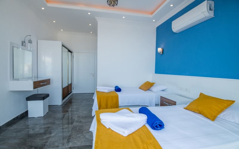 2. Yatak Odası: 2 adet tek kişilik yatak, klima, mobilyalar, tuvalet-wc