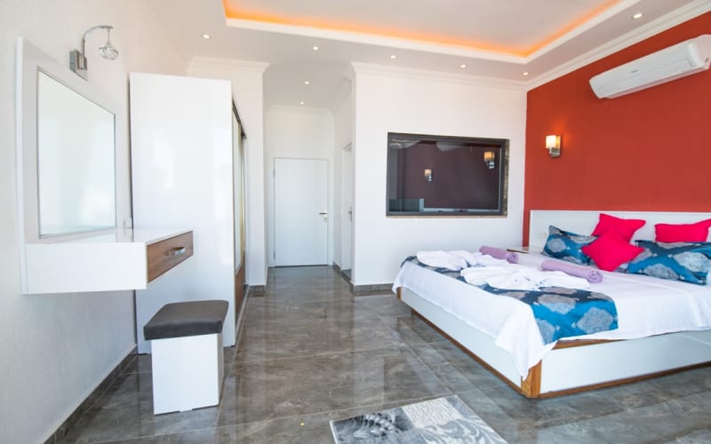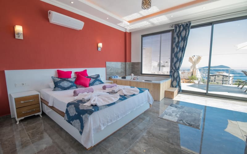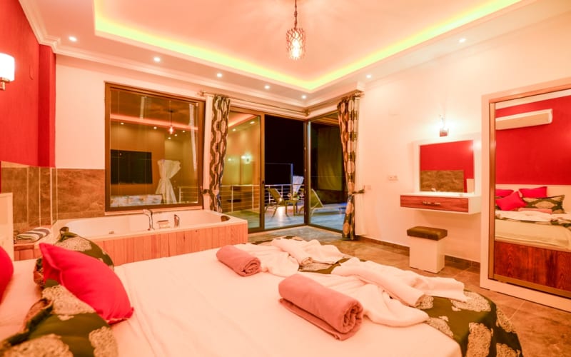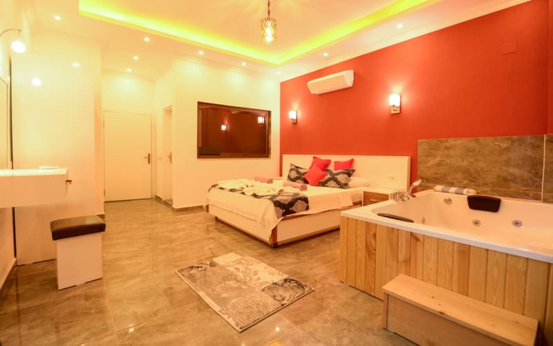 1. Yatak Odası: 1 adet çift kişilik yatak, klima, mobilyalar, jakuzi, tuvalet-wc