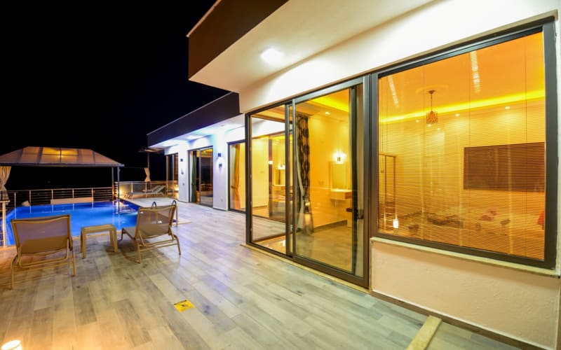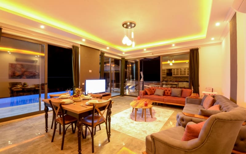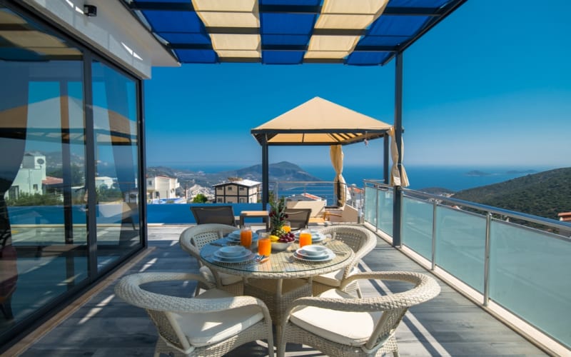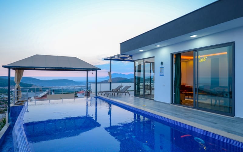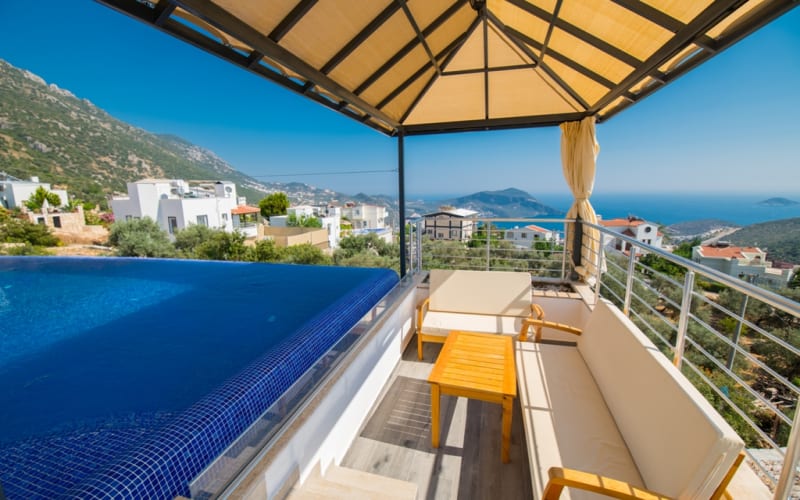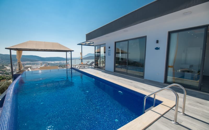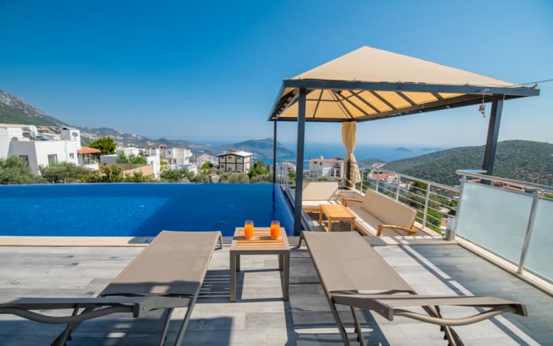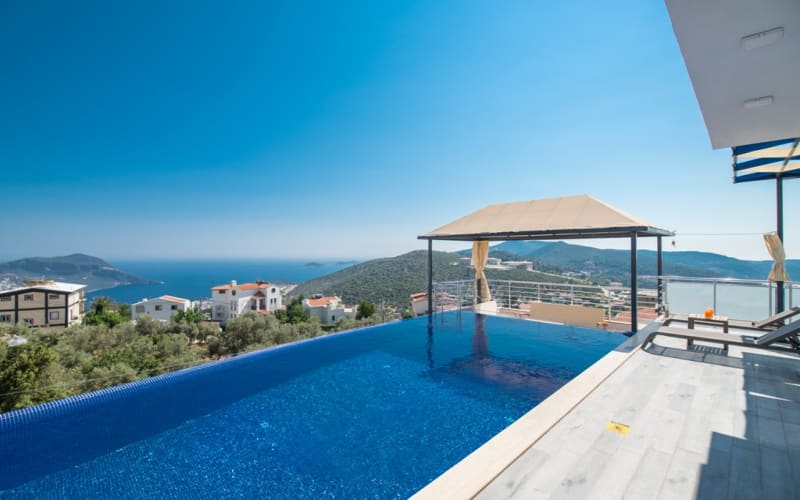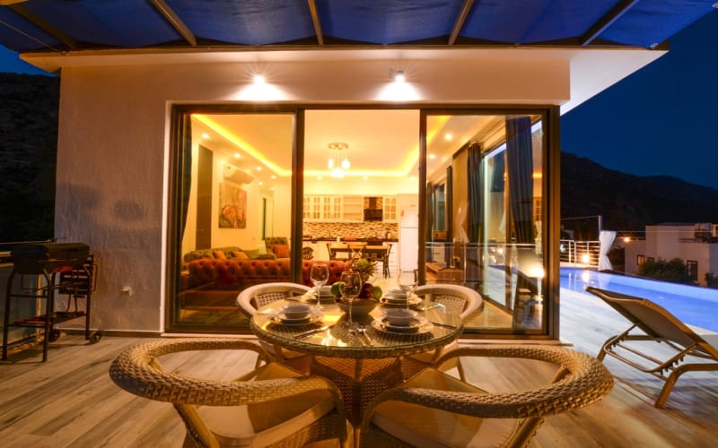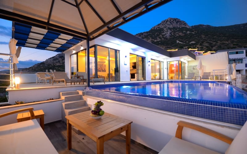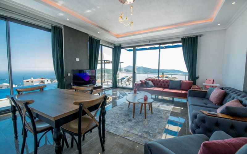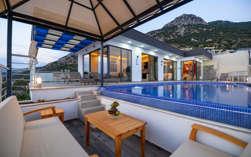 Kiralık tatil villamız Kalkan akbel mevkii'nde konumlanmış ve şık mobilyalarla donatılmıştır. Deniz manzaralı ve şık bir villadır. kapasitesi 2 yatak odasıyla 4 kişiliktir. Suit odalarından bir tanesi jakuzilidir. Tatil villamızdan kalkan merkeze araçla 7-8 dakikada ulaşım sağlayabilirsiniz. Balayı çiftlerimiz ve küçük ailelerimiz için ideal bir villadır.