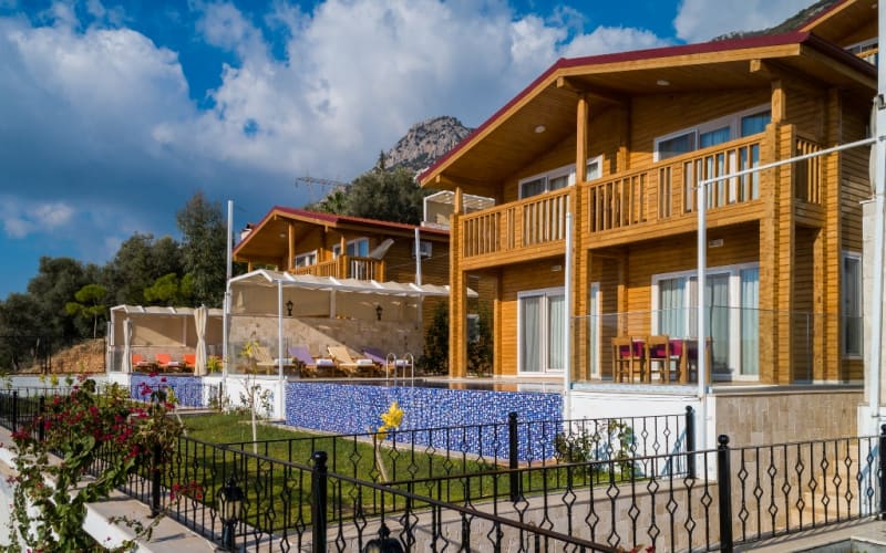 sırayla arka arkaya tasarlanmış tatil evlerimizin yanlarında veya önlerinde