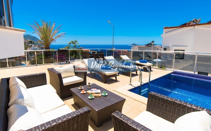 Villa Gold, Kalkan Kalamar mevkiinde bulunmaktadır ve özel havuzludur. Deniz manzaralı lüks tatil villasıdır. Şirin villamızın odaları muhteşem deniz manzarasına sahiptir. 3 yatak odalı 6 kişi konaklama kapasitelidir. villamız oldukça geniş ve konforludur. Çekirdek aile ve kalabalık arkadaş grupları için ideal bir tatil villası seçeneğidir. Villamız denize yürüme mesafesinde olup, Kalkan merkeze 1,5 km mesafededir.