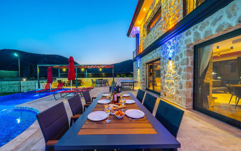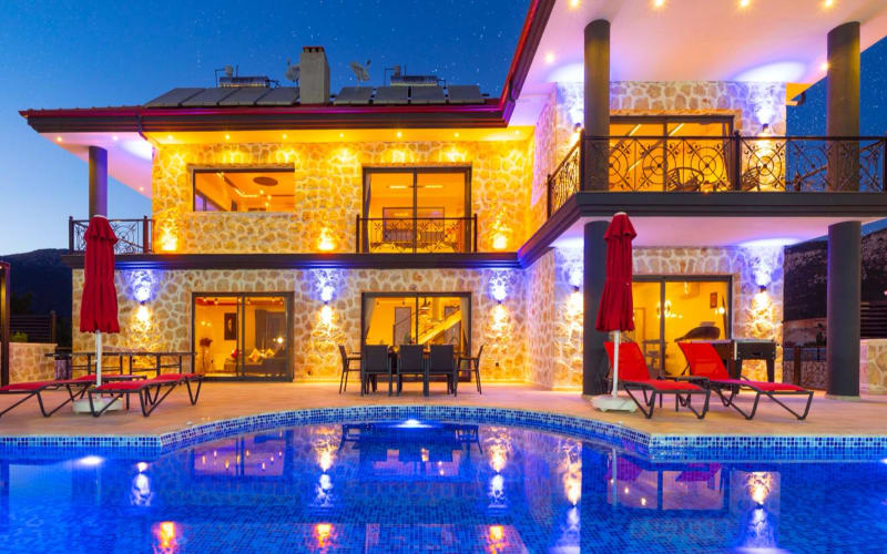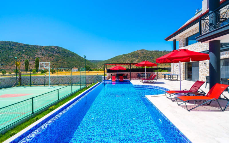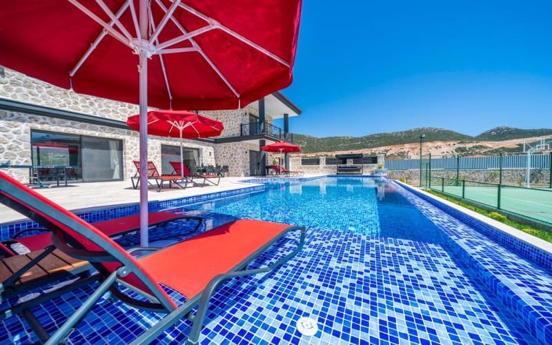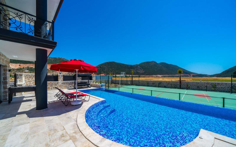 Kiralık özel havuzlu havuzlu lüks ve muhafazakar tatil villamız, Antalya'nın Kalkan tatil beldesine bağlı Bezirgan köyünde bulunmaktadır. Ultra lüks dizaynı ve Kaliteli mobilyalarıyla donatılmıştır. 3.5 dönüm arazi üzerine kurulan tatil villamız 3 yatak odası ile 6 kişilik kapasiteye sahiptir. Villamızın Özel Tenis ve basketbol sahası tatilinize keyif katacak ve unutulmaz bir tatil yaşayacaksınız. Kiralık tatil villamızın Kalkan merkeze uzaklığı araç ile 15 dakikadır. Özelliklerini saymakla bitiremeyeceğimiz kiralık özel havuzlu lüks villamız, Tenis ve basketbol sahası, sinema odası, odaya özel jakuzi, Langırt, hamam, sauna, barbekü ve bir çok özelliği ile siz değerli misafirlerimizi beklemektedir.