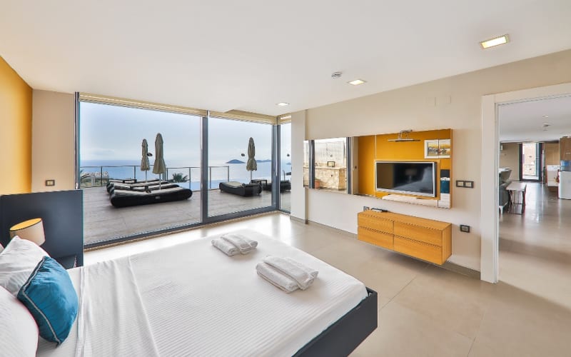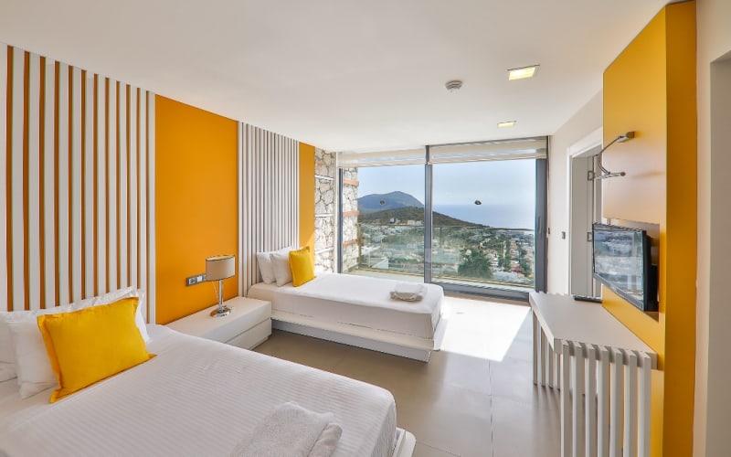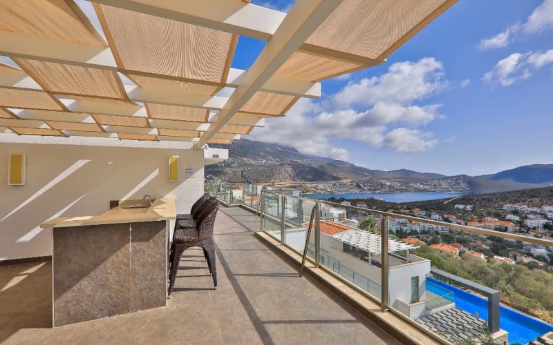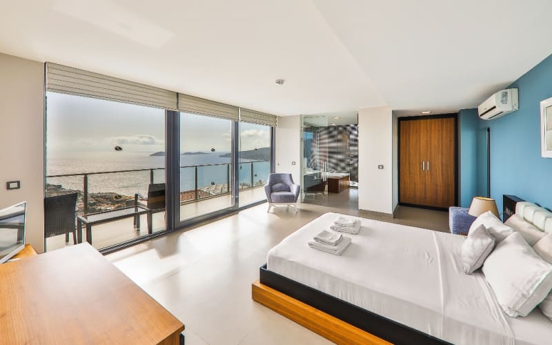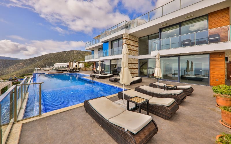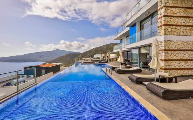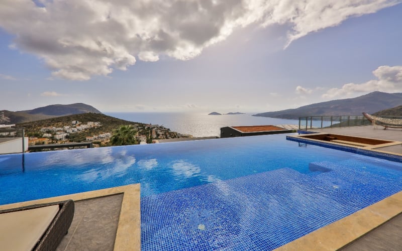 Kiralık özel havuzlu ultra lüks Full deniz ve şehir manzaralı tatil villamız Antalya Kalkan Kalamar mevkii'sinde bulunmaktadır ve 5 yatak odalı olarak tasarlanmıştır. Şık tasarımı, Geniş havuzu ve eşsiz manzarası ile ön planda olan tatil evimizin içerisinde bulunan mobilyalar ve mutfak ekipmanları kaliteli markalarla donatılmış ve hizmetinize sunulmuştur. Tatil villamız Kalkan merkeze araç ile 5 dakika mesafededir. Villamız 5 odalı ve 10 kişi kapasitelidir. Tüm odalarında klima ve tv mevcuttur, ana yatak odasında özel bir Jakuzi bulunmaktadır. Kalkan merkeze inmeden, kalamar bölgesinde bulunan cafe, restoran ve marketler villamıza yürüyüş mesafesindedir.