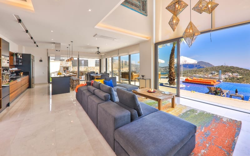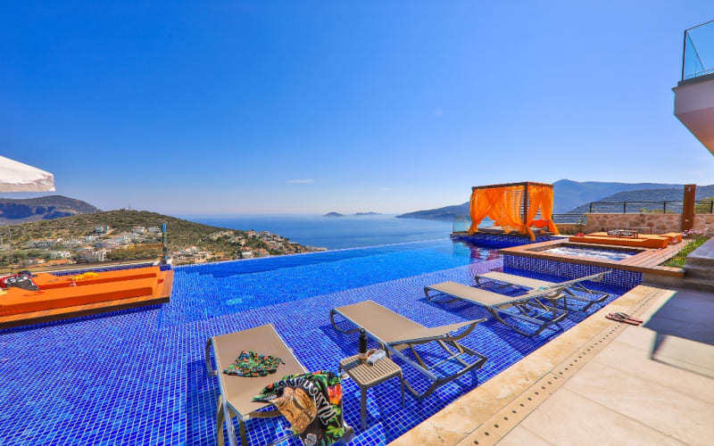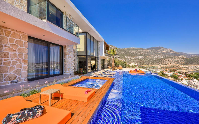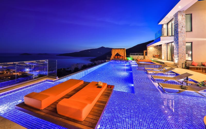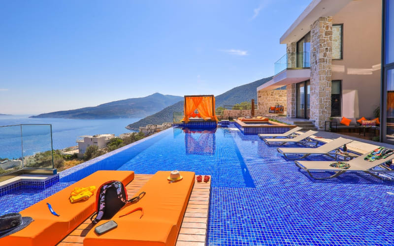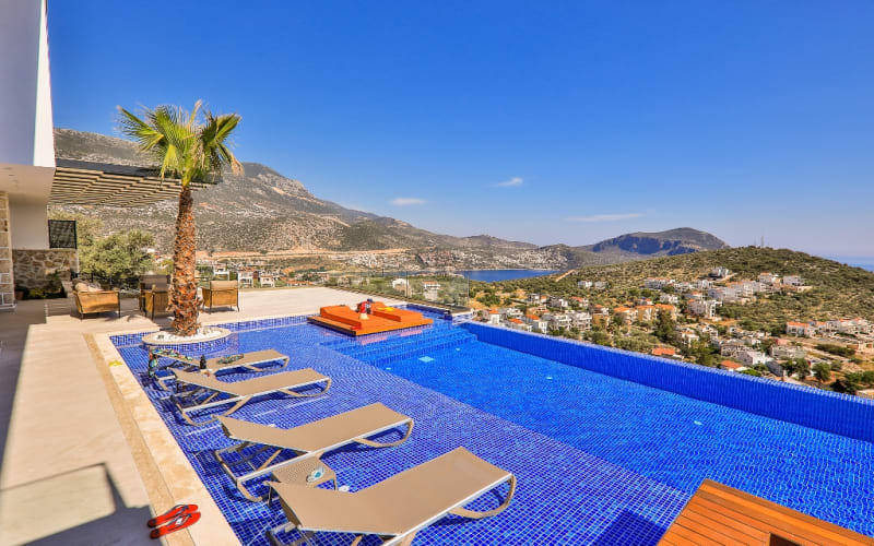 Kiralık lüks tatil Villamız Shine, 6 yatak odalı ve 12 kişi kapasitelidir. Kalkan Kalamar’da muhteşem manzara ve eşsiz bir lokasyondadır.. Kalkan Koyu’nu, denizi ve adaları ayaklarınızın altına seren kesintisiz panaromik manzarası ile kiralık villamız en güzel anlarınıza ev sahipliği yapacak nadide ve özel bir villadır.