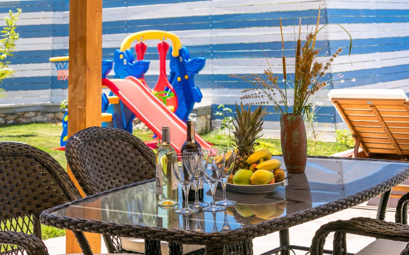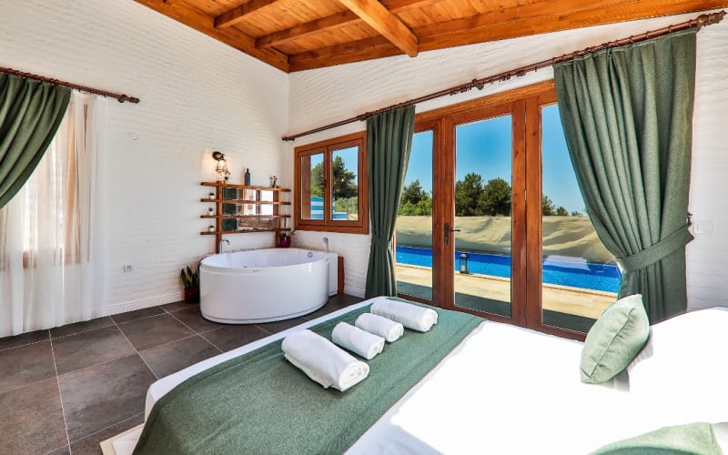 Özel korunaklı yüzme havuzu, barbeküsü, odaya özel jakuzisi, bahçe oturma grubu