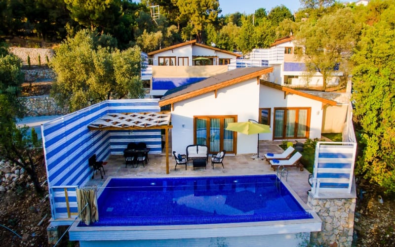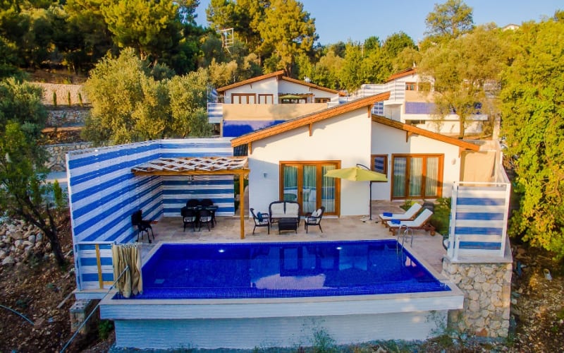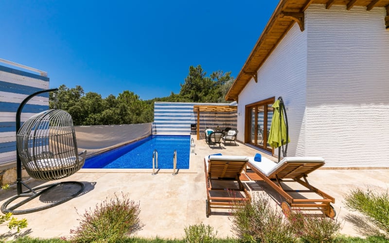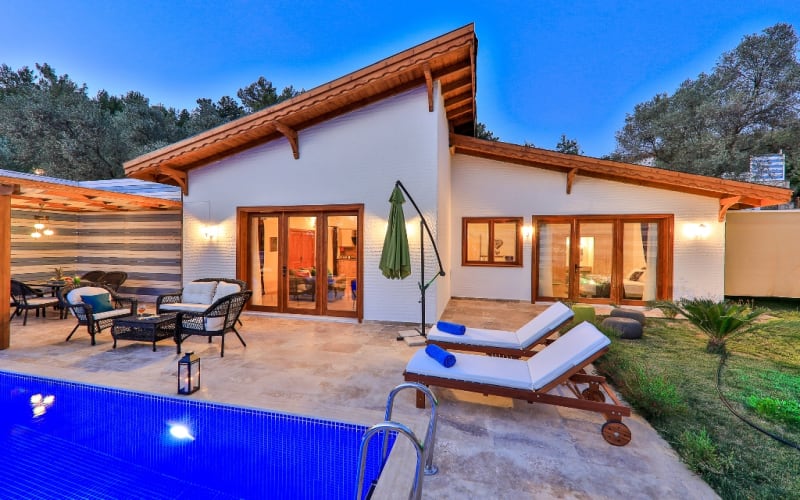Kiralık özel yüzme havuzlu tatil villamız, Kalkan’ın en güzel tatil köylerinden biri olan İslamlar Köyü’nde bulunmaktadır. Yemyeşil ağaçların arasında, muhteşem doğa manzarasıyla öne çıkan kiralık villamız, misafirlerine doğanın tadını çıkarabilme imkanı sunmaktadır. Villa Sunset, 2019 yılında yapımı tamamlandı ve tek katlı ahşap şirin bir villa ortaya çıktı. Kiralık Villamız, 1 odasıyla 2 kişilik konaklama kapasitesine sahiptir. Balayı çiftleri ve çekirdek aileler için ideal olup korunaklı havuzlu muhafazakar konseptte bir villadır. Misafirlerimizin her türlü konfor ihtiyacı düşünülerek hayata geçirilen tatil evimiz, doğal yaşam içerisinde rüya gibi bir tatil keyfi sunmaktadır. Villa Sunset Kalkan merkeze 8 km mesafededir.