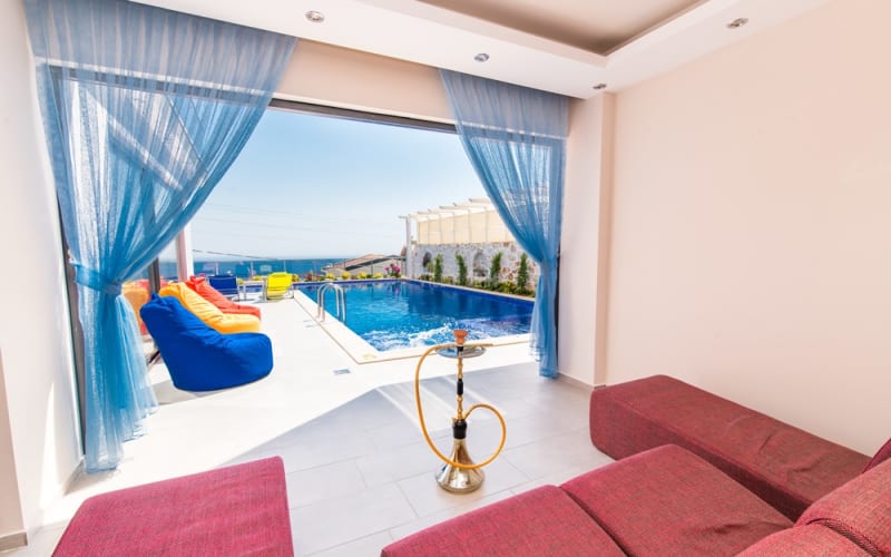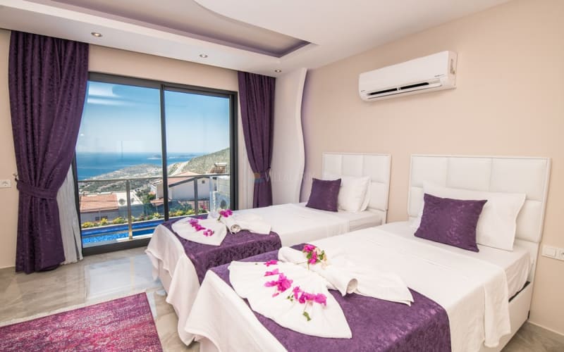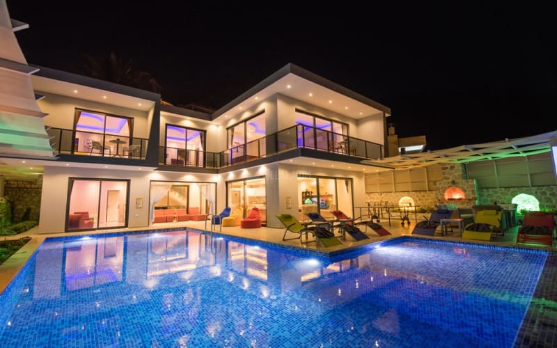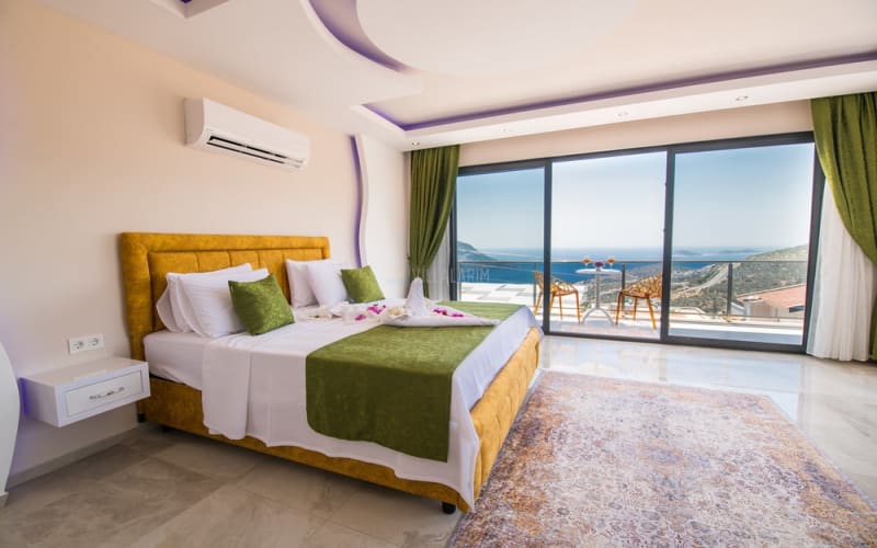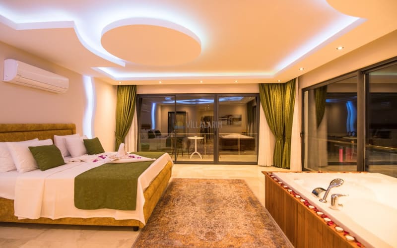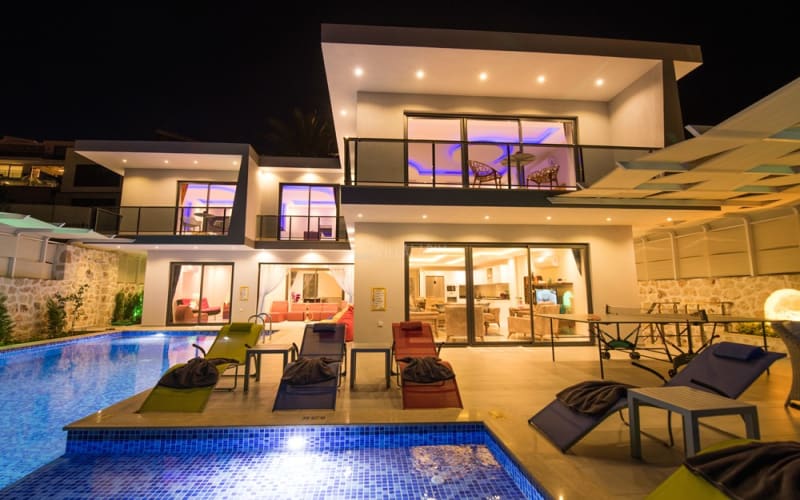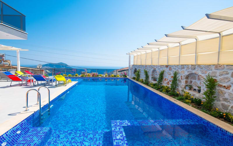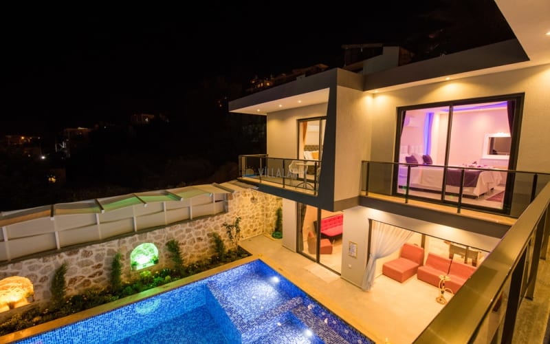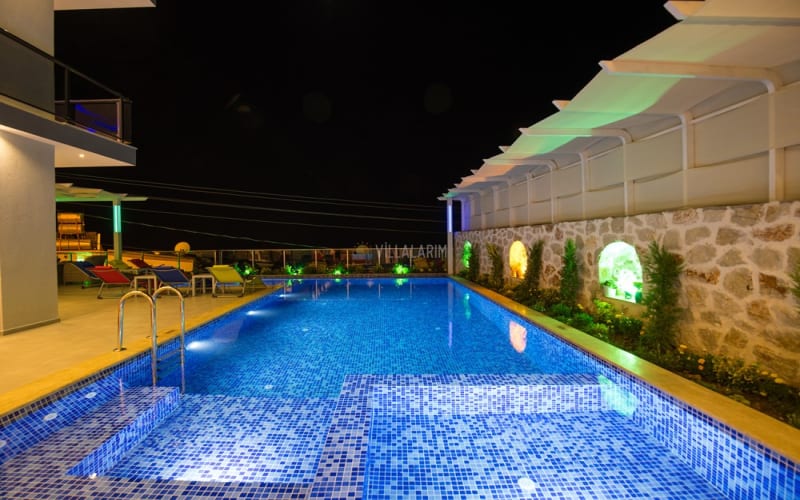 Kalkan Akbel bölgesinde konumlanan villamız, 6 kişilik kapasitelidir. Villamız muhteşem bir deniz manzarasına sahiptir. 3 yatak odası bulunan villamızın konforlu bir dekorasyonu vardır. Villamızın iç kısmında sauna, jakuzi, sinema odası, langırt gibi seçenekler mevcuttur. Geniş bir havuzu, çocuk havuzu, barbekü, masa tenisi gibi seçenekler de verandasında mevcuttur. Havuzu korunaklı olup, muhafazakar tatil için idealdir.