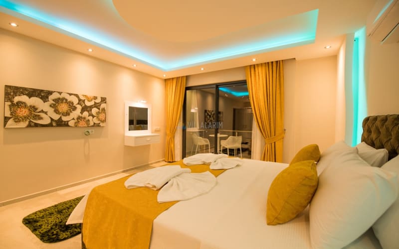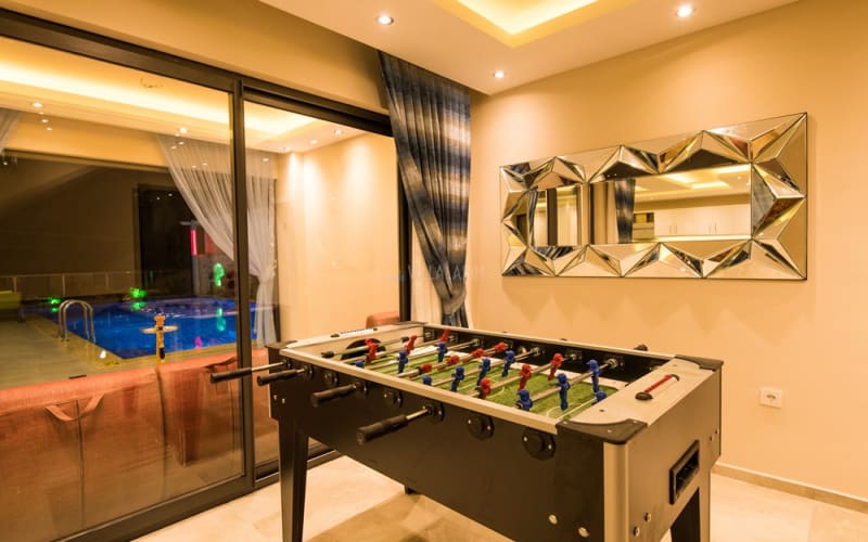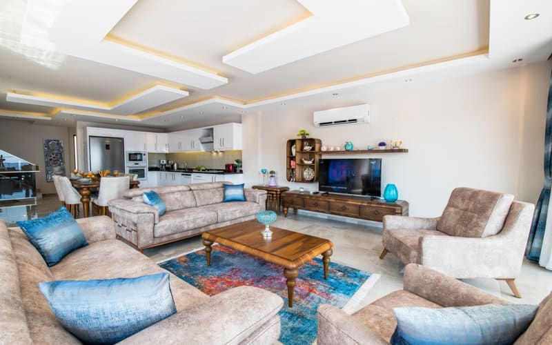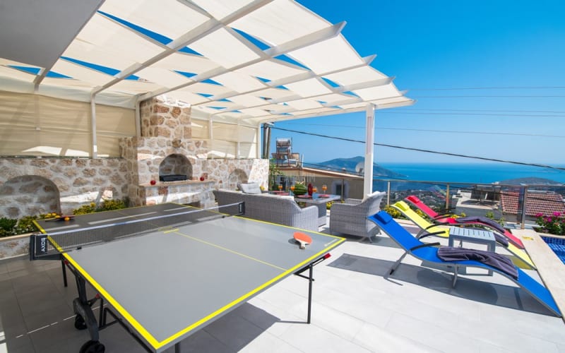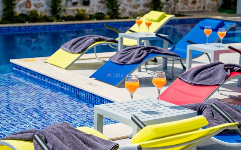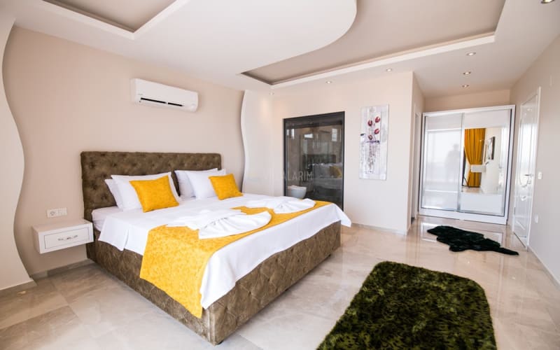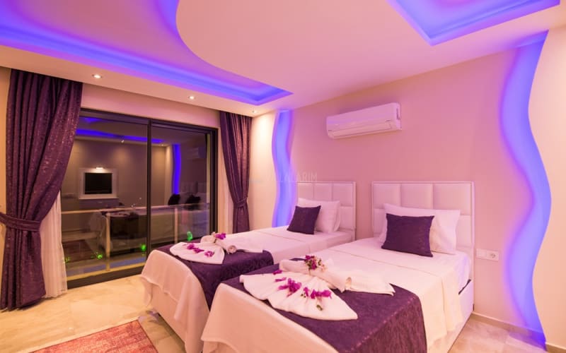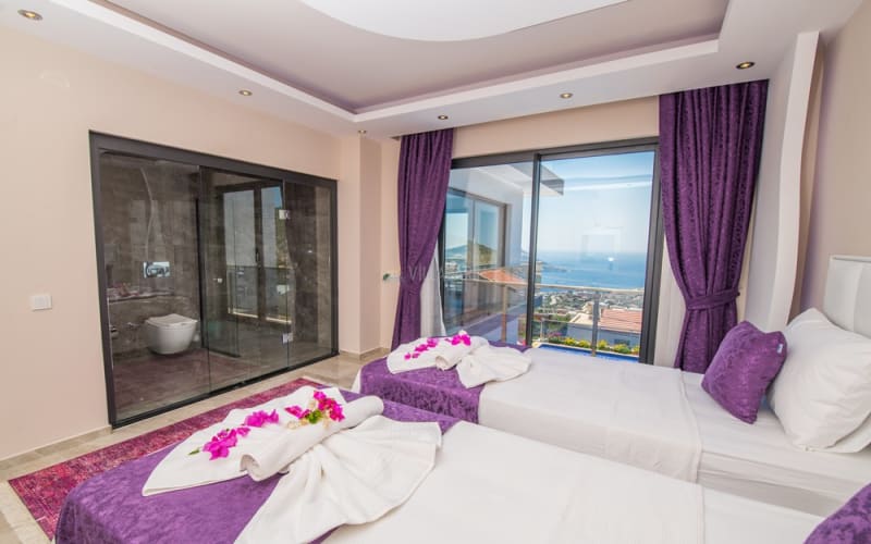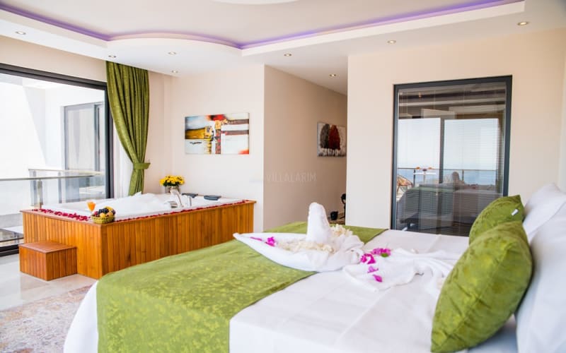 Kalkan Akbel bölgesinde konumlanan villamız, 6 kişilik kapasitelidir. Villamız muhteşem bir deniz manzarasına sahiptir. 3 yatak odası bulunan villamızın konforlu bir dekorasyonu vardır. Villamızın iç kısmında sauna, jakuzi, sinema odası, langırt gibi seçenekler mevcuttur. Geniş bir havuzu, çocuk havuzu, barbekü, masa tenisi gibi seçenekler de verandasında mevcuttur. Havuzu korunaklı olup, muhafazakar tatil için idealdir.