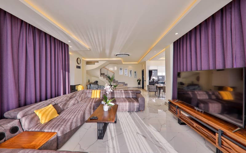 Salon : Deniz manzarasına sahip salonumuzda lüks bir oturma grubu ile konforunuz en üst düzeyde olacaktır. Bu lüks oturma grubunun yanında TV, klima, sehpa, lavabo, tuvalet gibi imkanlar vardır. Ayrıca salondan havuz terasına çıkış vardır.