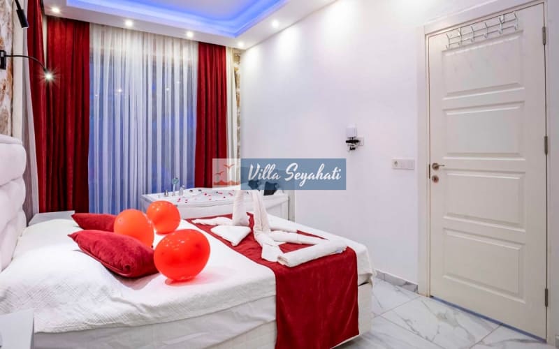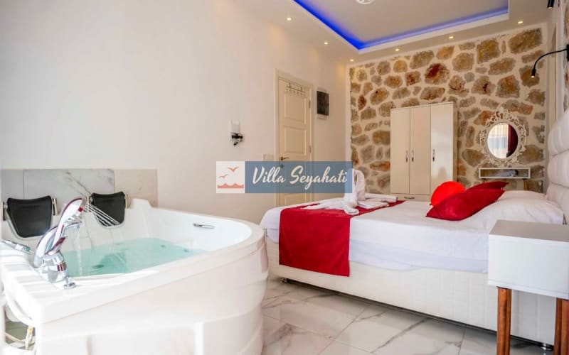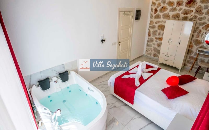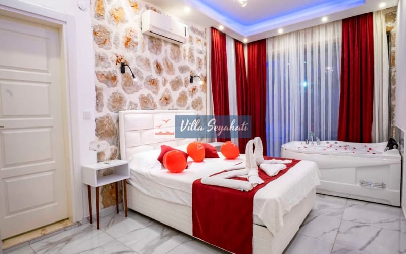 Kalkan Ulugöl mevkisinde bulunan kiralık balayı villası, sessizliğin, huzurun hakim olduğu bir villada tatil isteyen çiftlerimiz için oldukça uygun bir seçenektir. Muhafazakar villalar ve balayı villaları kategorisinde yer alan villamız, 2 yatak odası ile 4 kişilik konaklama kapasitesine sahiptir. Havuzu korunaklı ve bahçesi dışarıdan görünmeyen Villa Pamir, mahremiyete önem veren çiftlerimiz için huzur dolu bir tatil fırsatı sunuyor. Ayrıca yatak odasında misafirlerimizin rahatlaması için 2 kişilik jakuzi konforu da sağlamaktadır.