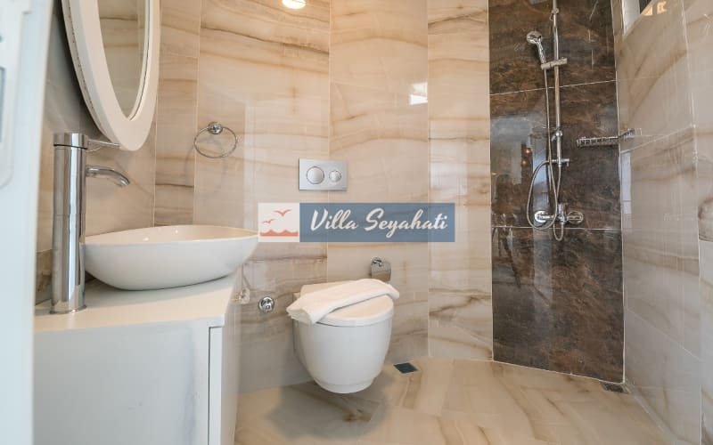 Eşsiz panoromik manzarası, gözlerden uzak sakin ve huzurlu bir tatil için sağladığı imkan ve 4 yatak odalı (4 odada çift kişilik yatak) 8 kişilik kapasitesiyle Villa Nature unutulmaz bir tatil deneyimi yaşamak isteyenlerin gözde villalarından. Villada kendi evinizde gibi hissetmeniz için her türlü imkan bulunuyor. Lüks ve konforu bir arada isteyenler için doğru adres Villa Nature. Muhafazakar ailelere uygun, her odaya ait tuvalet/banyo ve ortak wc bulunmaktadır.