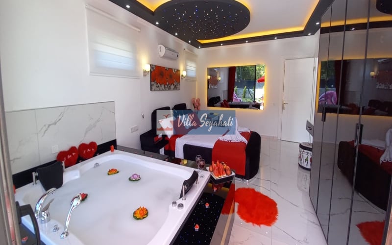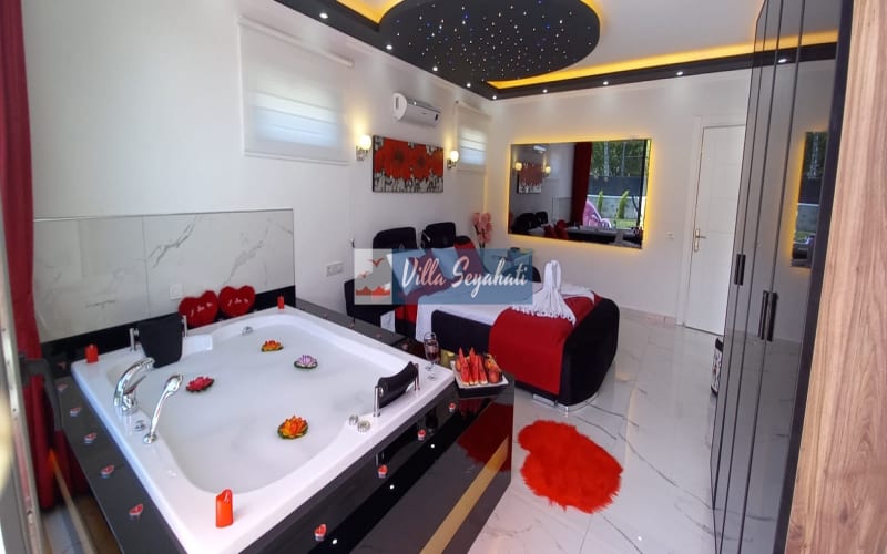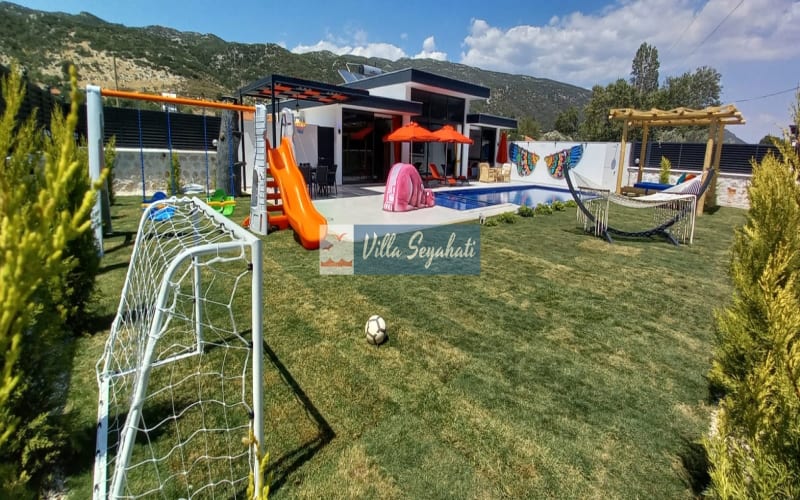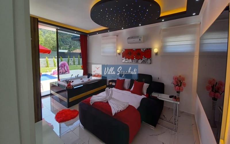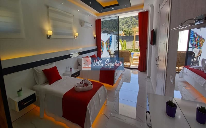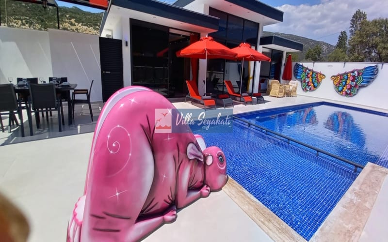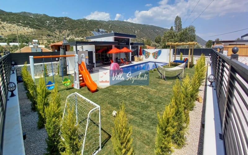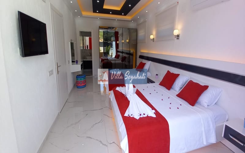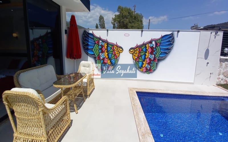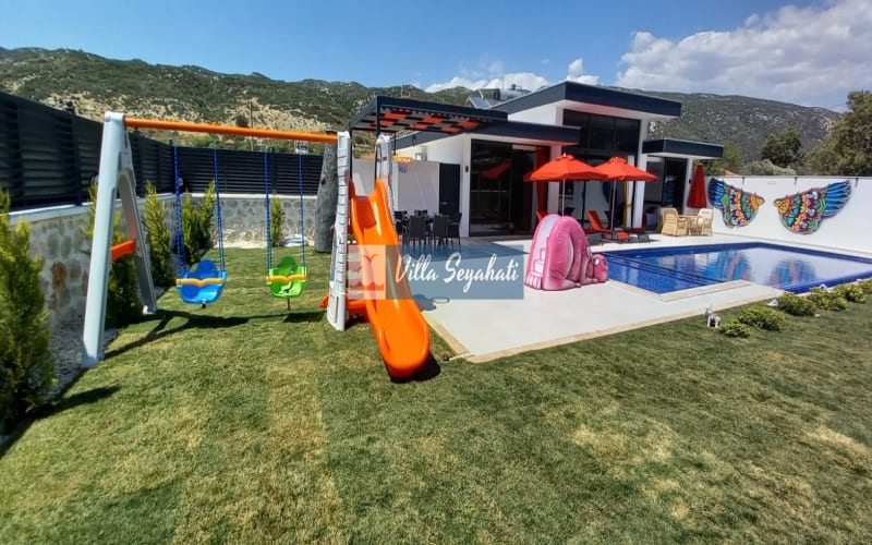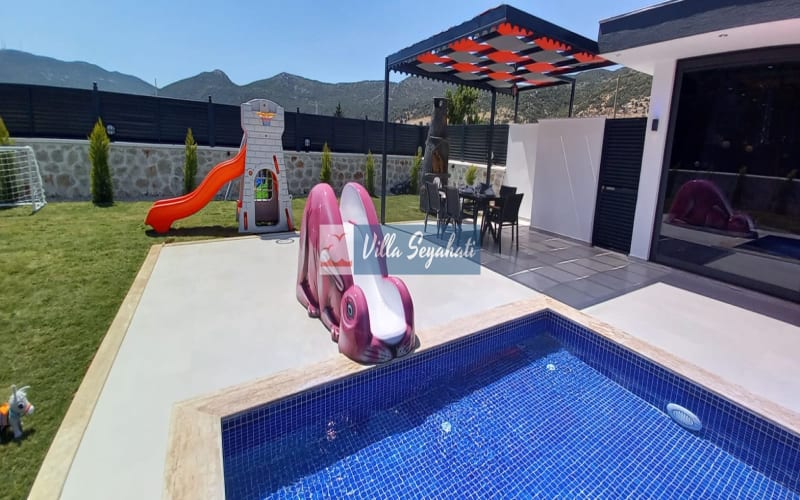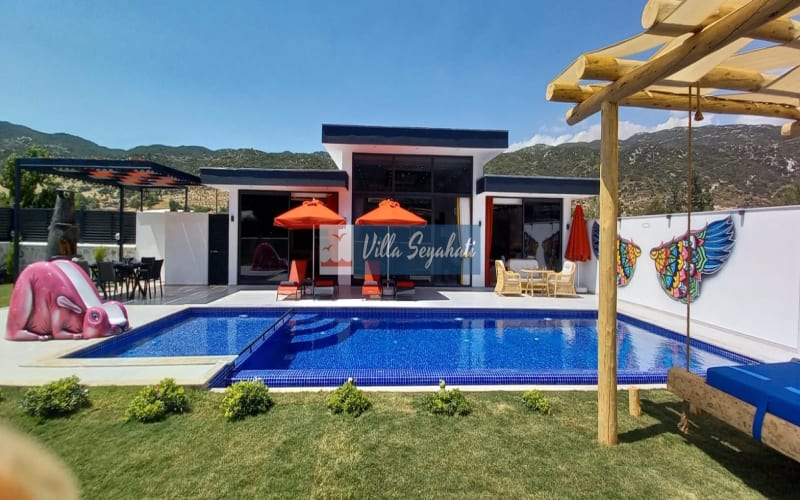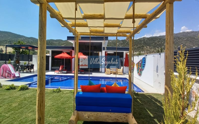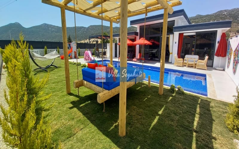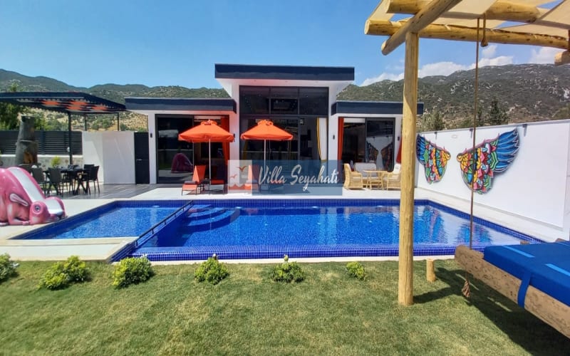 Kalkan Sarıbelen Bölgesinde doğa içinde bulunan villamız 2 yatak odalı olup 5 kişi kapasitelidir. Villamızın havuzu korunaklı yani muhafazakar haldedir. Villamızın yatak odasında jakuzi ve havuz ile bitişik çocuk havuzu bulunmaktadır. Villamız balayı çiftleri ve küçük aileler için harika bir tatil imkanı sunar.