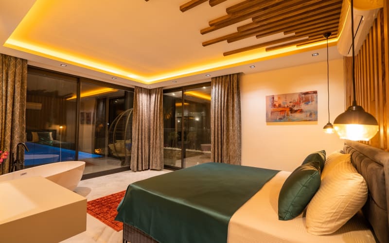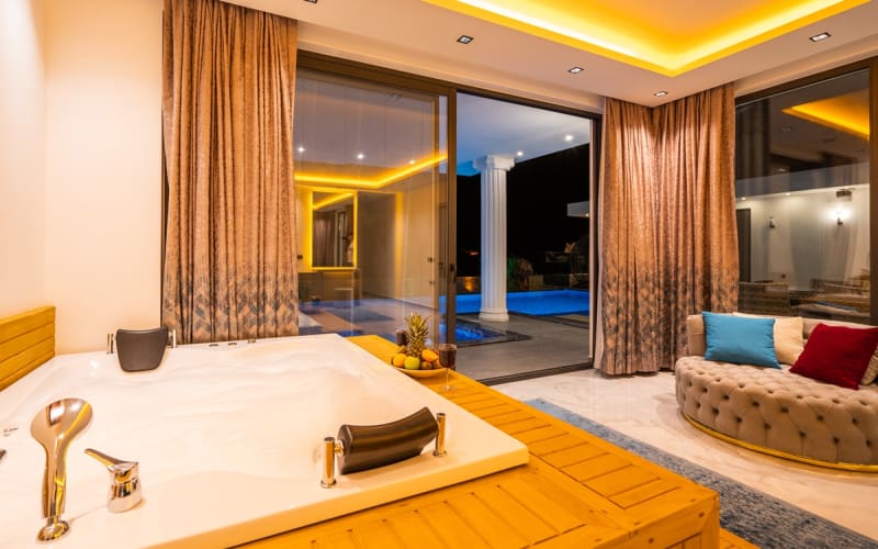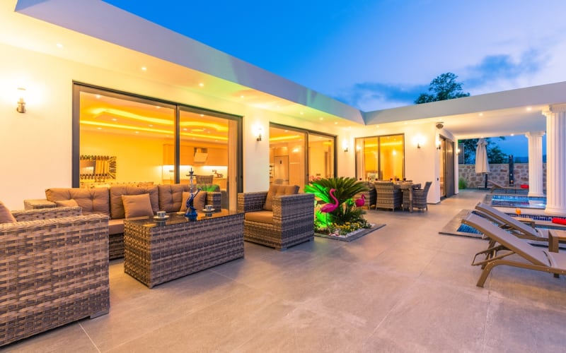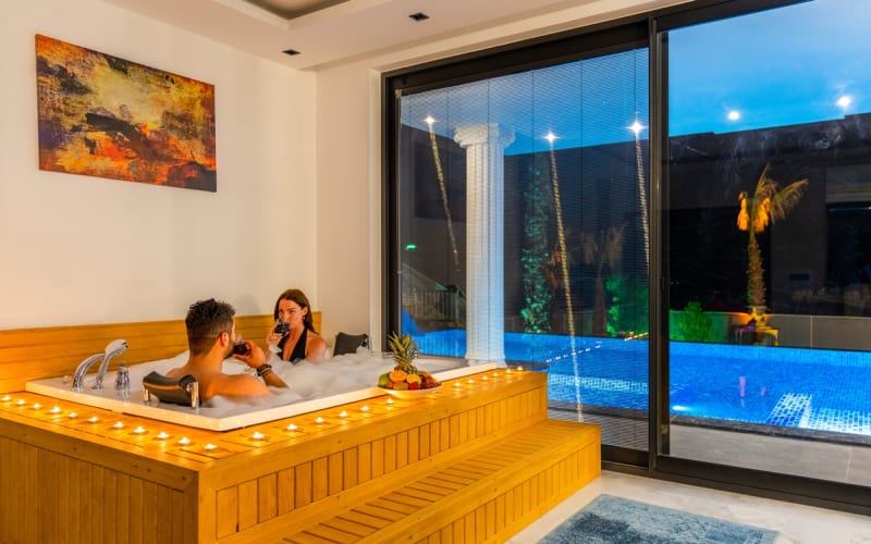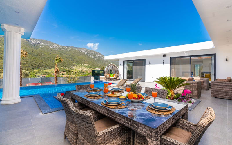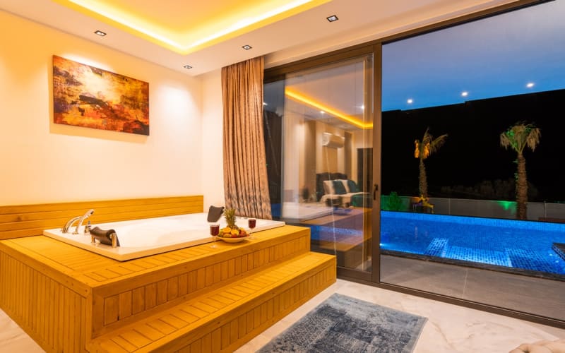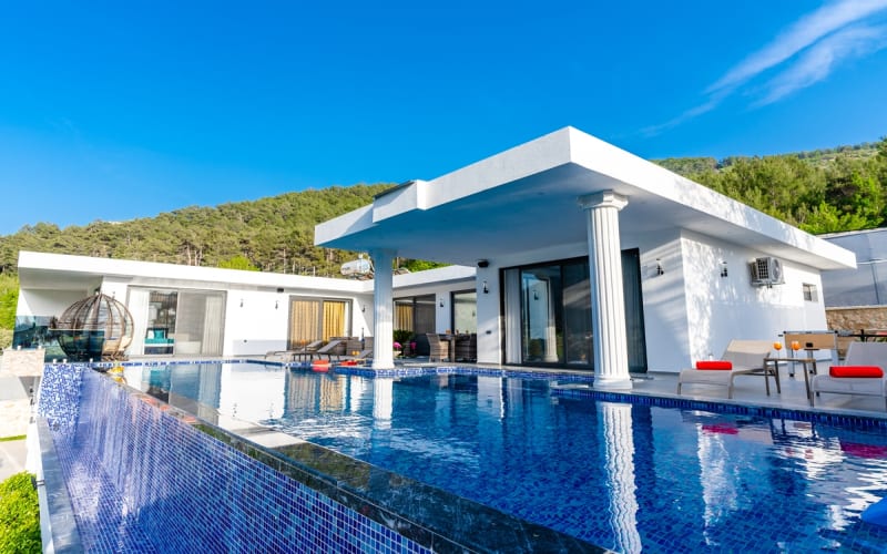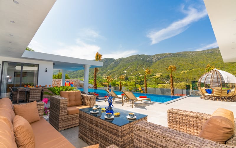 Kiralık villa DOĞA, Kalkan/Hacıoğlan bölgesinde konumlanmıştır. Villamız kalkan da lüks kiralık tatil villaları arasındadır. 6 kişilik kapasiteye sahip 3 yatak odalı özel havuzlu korunaklı lüks villalarımız arasındadır. Villamızda jakuzi, küvet, çoçuklar için oyun alanı(sandalye,masa, kitap,oyuncaklar), sinema odası, masa tenisi, langırt, playstation, küçük çoçuk parkı ( kaydırak ve salıncak), büyük çocuk parkı( kaydırak, salıncak, top havuzu, trambolin, tahterevalli, futbol kalesi, basketbol potası), havuz başında barbekü, nargile, oturma grubu, yemek masası, apple yatak bulunmaktadır. Villamızın büyük havuzunda çoçuk havuzu, jakuzisi ve şelalesi bulunmaktadır. Villamız 400 m² çim alana sahiptir. Kalkan şehir merkezine 15 dakikalık yol mesafesindedir. Villamızın havuzu korunaklı olup muhteşem bir doğa manzarasına sahiptir. Villamızın alt kısmında ise spa merkezi bulunmaktadır.