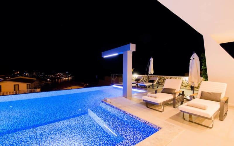 Kalkan merkezde ultra lüks kiralık villamız 4 yatak odalı olup modern sistemle donatılmıştır. 1 adet sauna hamam 1 adet sinema odası , lobisi , spor alanı ve sıcak-soğuk olmak üzere 2 adet havuzu bulunmaktadır. mekan oldukça geniş ve kullanışlı olup etrafı yeşilliklerle donatılmıştır. oldukça modern ve lükstür villamızda 1. sınıf mobilya dizayn edilmiş Mitsubishi klima kullanılmıştır. oto garajı otomatik olarak açılıp kapanmaktadır. Ayrıca kamera ve alarm sistemi bulunmaktadır. Villamız son derece modern ve kullanışlıdır.