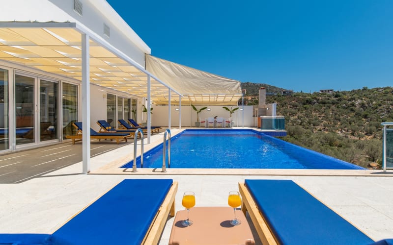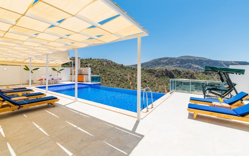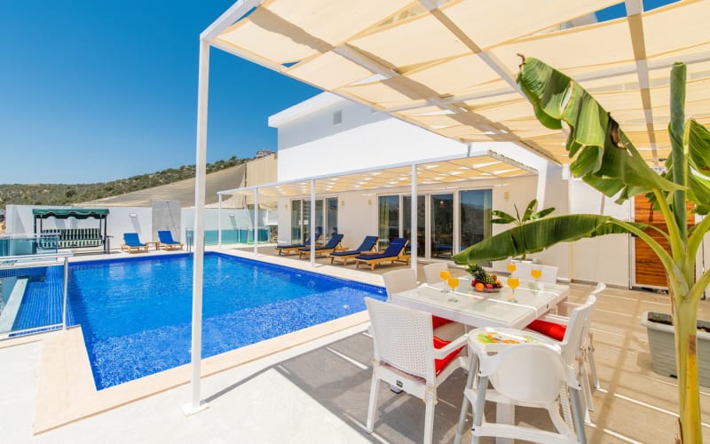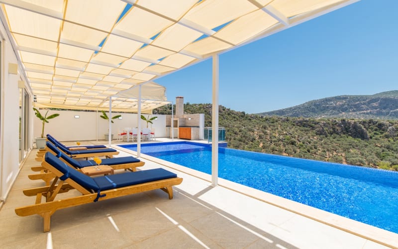 Kiralık Lüks Tatil Villamız Kalkan merkeze araçla 5 dakika uzaklıkta olan Ulugöl tatil köyünde yer almaktadır, Kalkan'ın en güzel doğa manzarasına sahip villalarından biri olma özelliğine sahiptir. Temmuz 2022'de yapımı tamamlanmış ve hiçbir masraftan kaçınılmamıştır. Lüks tasarımlı villamızda kaliteli mobilyalar, kaliteli ev aletleri kullanılmaktadır. Muhteşem doğa manzarasına sahip olan tatil villamız 2 yatak odası ile 4 kişilik kapasiteye sahip olmakla birlikte salondaki koltuklar ile kapasite 6 kişiye kadar çıkabilmektedir.