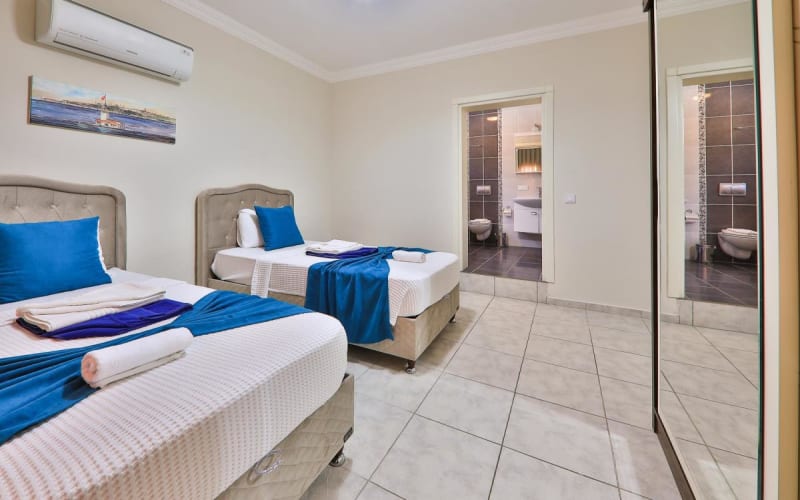 3.Yatak Odası: 2 adet tek kişilik yatak, klima, makyaj masası, komodin, elbise dolabı banyo ve tuvalet bulunmaktadır.
