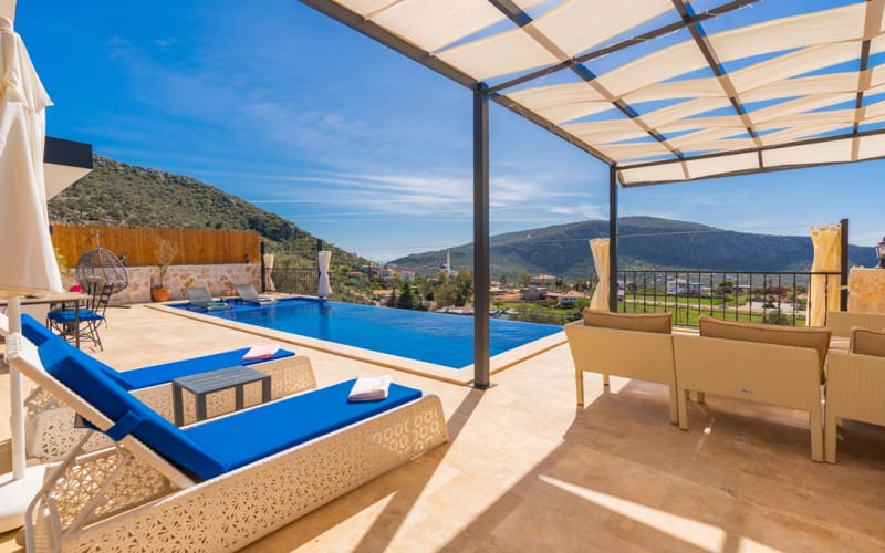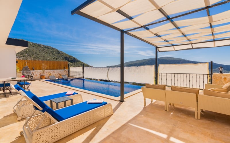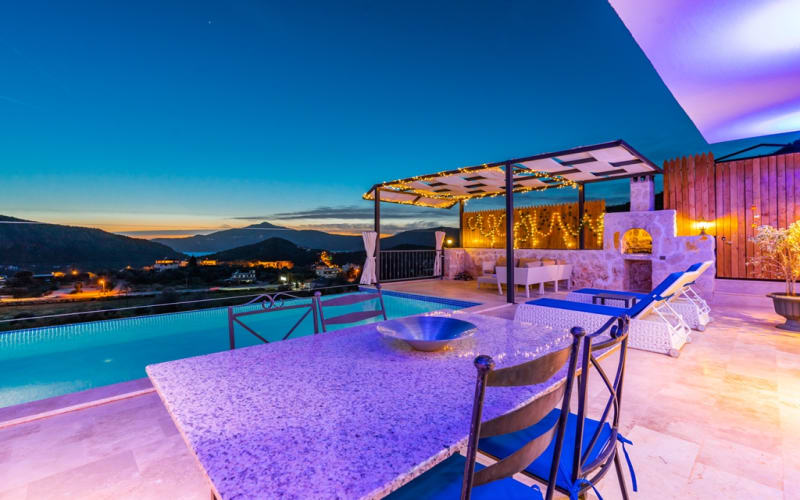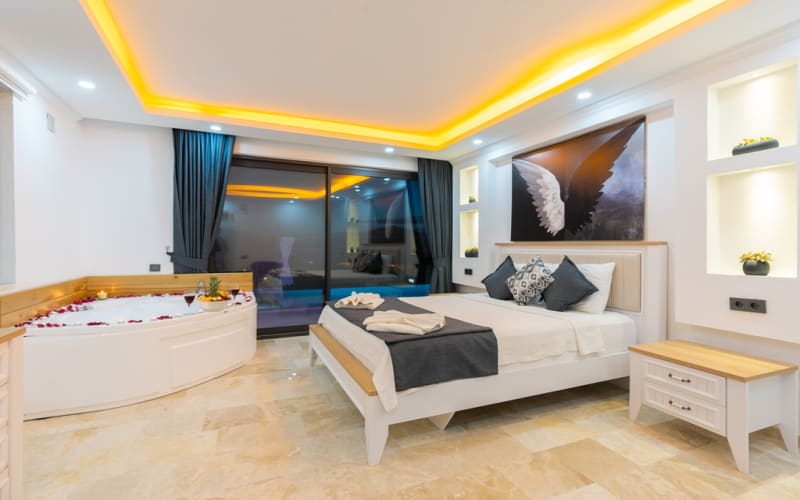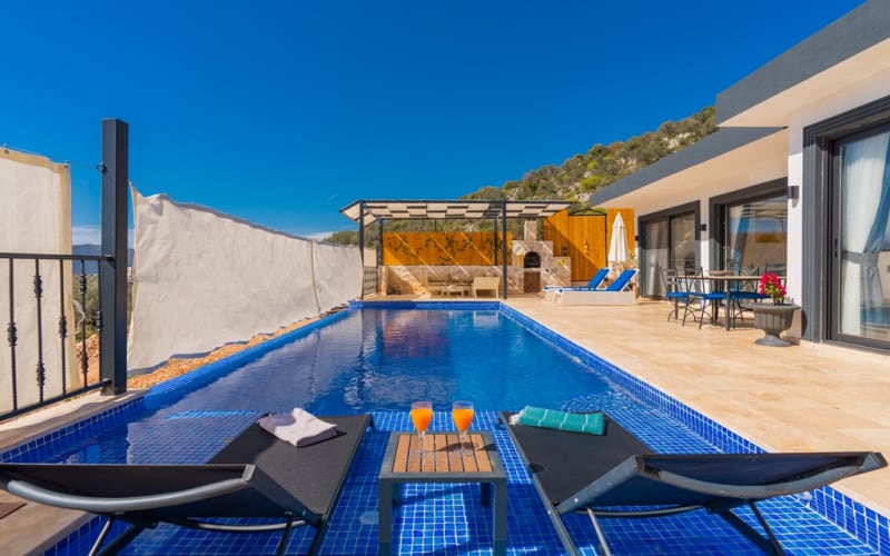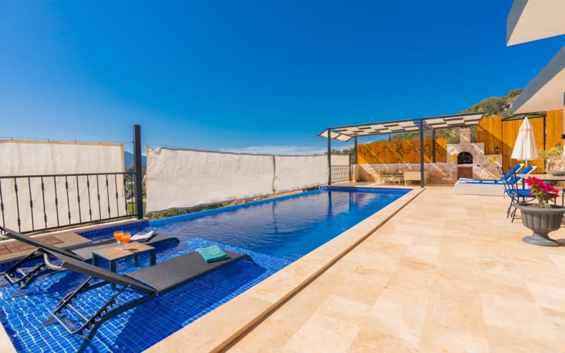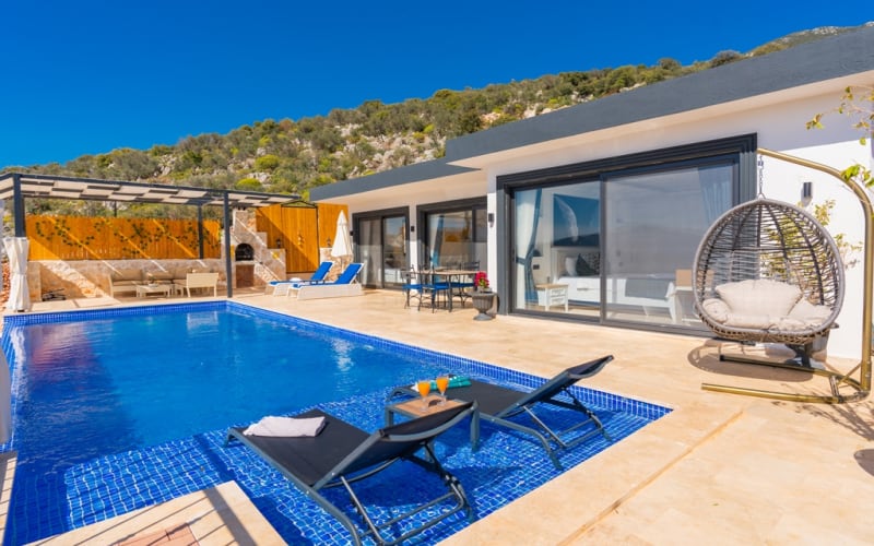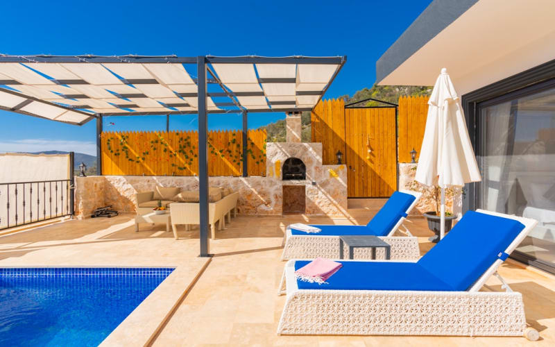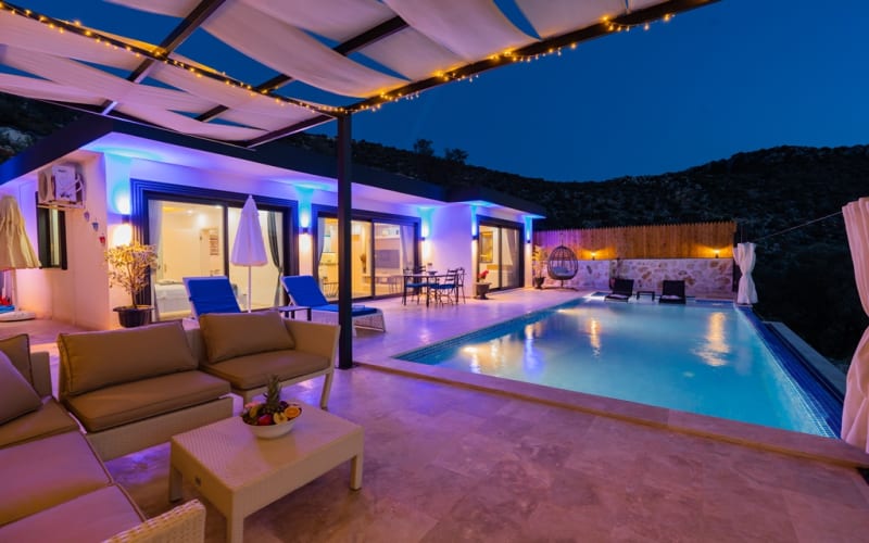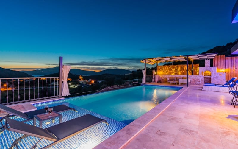 Villa Çelik ,Kalkan Ulugöl mevkiinde, 2 yatak odalı 4 kişi kapasiteli jakuzili size özel kiralık villamızdır. 2 yatak odası olan villamız toplamda 4 kişi konaklama kapasitesine sahiptir. Muhteşem doğa manzarasına sahip villamız balayı çiftlerimiz ve çekirdek aileler için ideal bir seçim olacaktır.Bahçe ve havuz alanı korunaklıvillamızda dilediğiniz gibi vakit geçirebilir aileniz ile güzel zamanlar geçirebilirsiniz. Eksiksiz araç-gereçli ve konforlu eşyalı sayesinde kendi evinizdeymiş gibi hissedecek ve tatilinizin hiç bitmemesini isteyeceksiniz. Size özel havuzda yüzerken akşamları muhteşem doğa manzarasıyla birlikte gün batımını da izleyebileceksiniz. Size özel havuzu ve jakuzisisayesinde tüm yılın vermiş olduğu yorgunluğu ve stresinizi üzerinizden atabilme imkanı bulabileceksiniz. Modern ve merkeze yakın konumda yer alan villamız siz değerli misafirlerimizi beklemektedir.