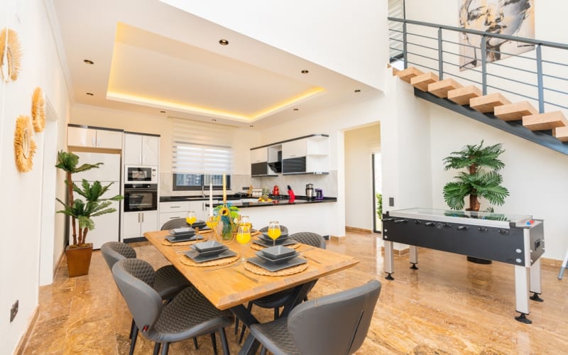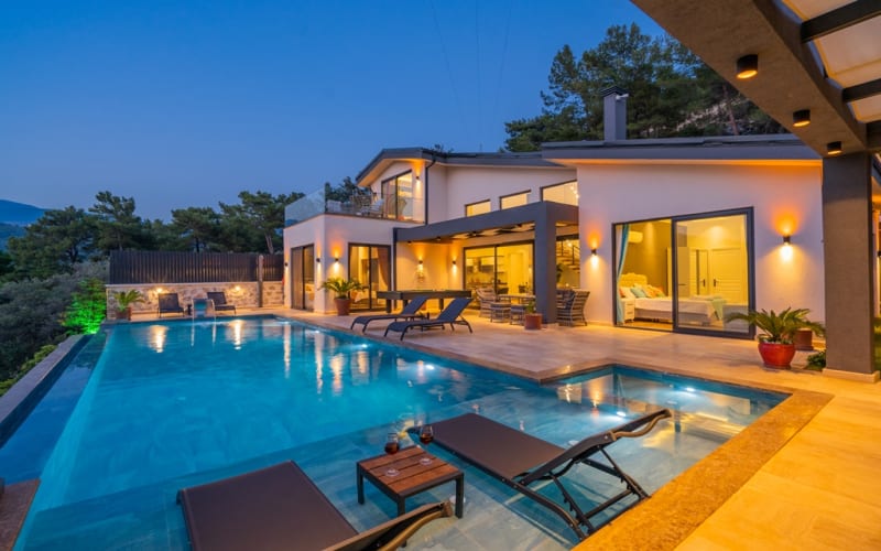 Villa Syringa, Lüks ve modern Kalkan Yeşilköy bölgesinde yer alan villamız 3 yatak odalı ve 6 kişilik konaklama kapasitesine sahiptir. Kalabalık aile ve arkadaş grupları için oldukça ideal olan villamız son derece konforlu eşyalarla eksiksiz bir şekilde dekore edilmiştir. Doğa manzaralı villamızın geniş bahçesinde havuz, şezlong, güneş şemsiyeleri, bilardo, mini çocuk oyun alanı, yemek masası ve barbekü alanı yer almaktadır. Villa Syringa'nın iki yatak odasında jakuzi bulunması ise konaklamanızı daha da keyifli hale getirecektir. Detaylarıyla özenle tasarlanan villa, unutulmaz bir tatil deneyimi sunmak için bekliyor.