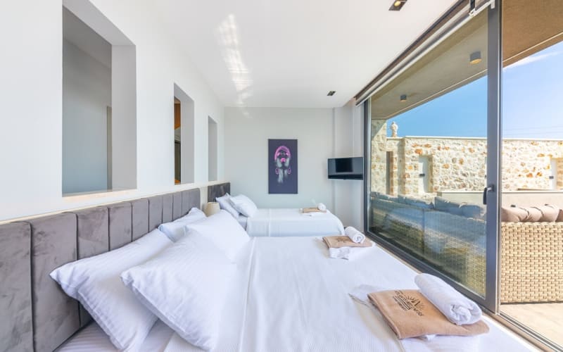 3. Yatak Odası :1 adet Çift kişilik yatak,Özel Giyinme bölümünde Elbise Dolabı, Komidin, Makyaj Masası,Saç Kurutma ,Klima, Jakuzi ,Fransız balkon,deniz manzarası bulunmaktadır