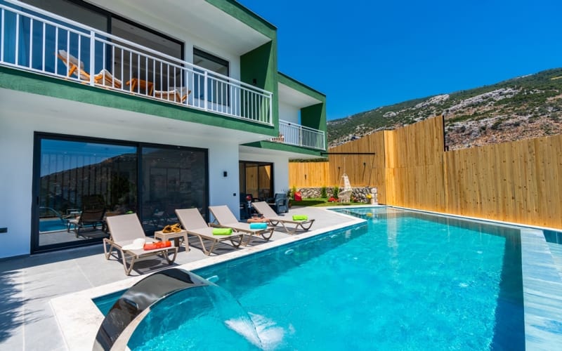 Villa BuYaz, Kalkan'ın huzur dolu İslamlar Bölgesi'nde yer alan bu kiralık villa, doğanın içinde huzurlu bir tatil deneyimi sunuyor. 2 yatak odası ve 5 kişi konaklama kapasitesi ile mükemmel bir aile tatili için ideal bir seçenektir. Villa Bu Yaz'ın iç mekanı modern ve konforlu bir tasarıma sahiptir ve ferah bir iç tasarım sunar. Villa Bu Yaz'ın yatak odalarında 2 çift kişilik yatak ve 1 tek kişilik yatak bulunmaktadır. Ayrıca bir yatak odasında jakuzi de mevcuttur. Bu villa, havuz terası ve bahçesi ile doğa manzarası eşliğinde huzurlu bir tatil sunar. Çocuk oyun alanı, salıncak, barbekü alanı, oturma mobilyaları, çocuk havuzu, özel yüzme havuzu ve langırt gibi harika olanaklar tatilinizin keyfini çıkarmanızı sağlar. Villa Bu Yaz, aileler için ideal bir tatil mekanıdır. Doğanın içinde huzurlu bir kaçış arayanlar için mükemmel bir seçenektir. Bu villa, tatilinizi unutulmaz kılacak olanakları ile sizleri bekliyor.
