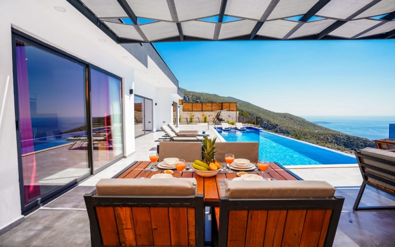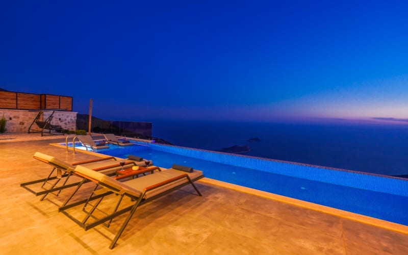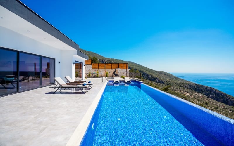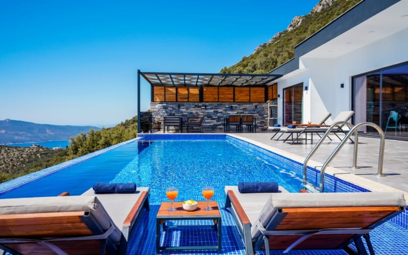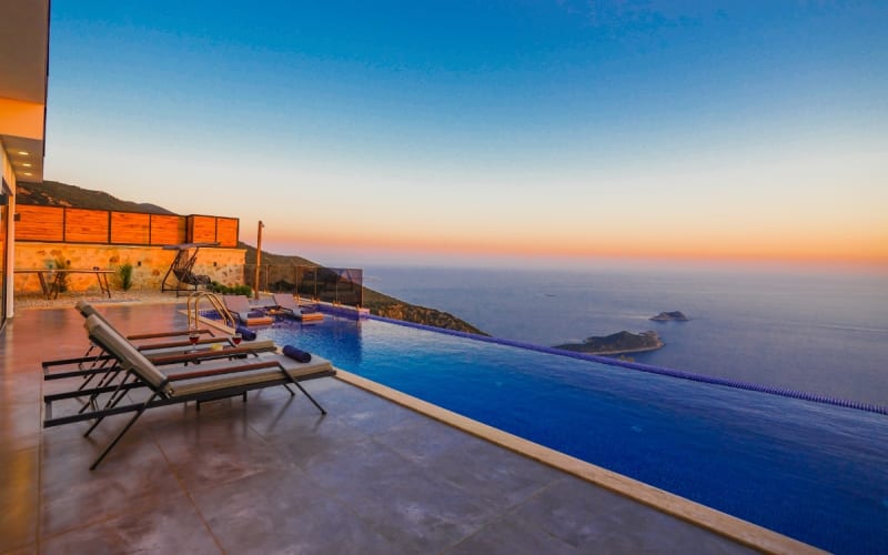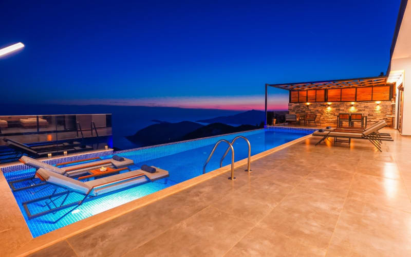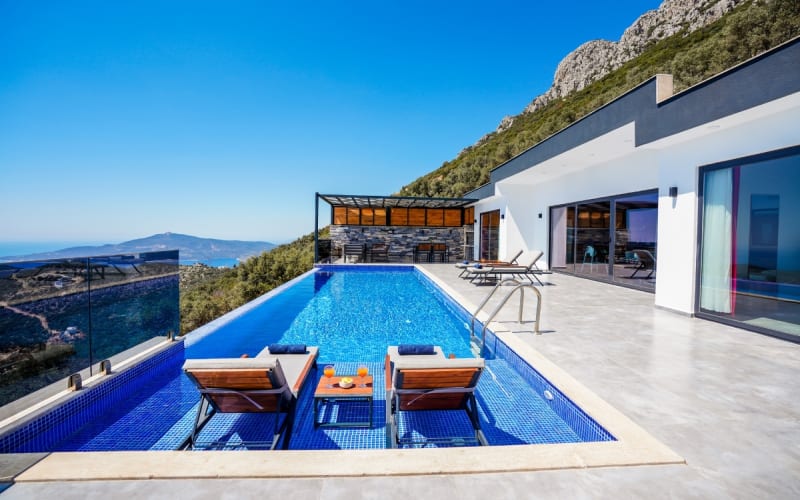 Kalkan Kördere bölgesinde bulunan kiralık villamız 2 yatak odalı ve 4 kişi konaklama kapasitesine sahiptir. Muhteşem manzaraya sahip olan hem doğa hemde deniz manzarası keyfini çıkarabileceğiniz havuz terasında şezlonglar, masa tenisi, salıncak ve barbekü bulunmaktadır. Tamamen korunaklı olan villa muhafazakar çiftler içinde ideal olup Kalkan merkeze 6 km uzaklıktadır.Ayrıca sonsuzluk havuzuna sahip olan villamızda muhteşem bir tatil imkanı yakalayabilirsiniz.