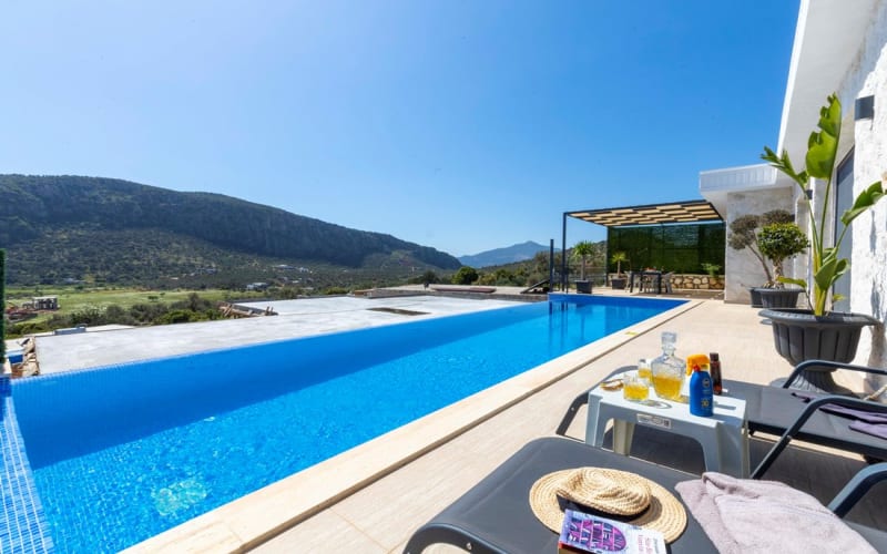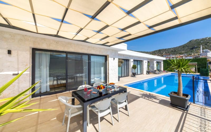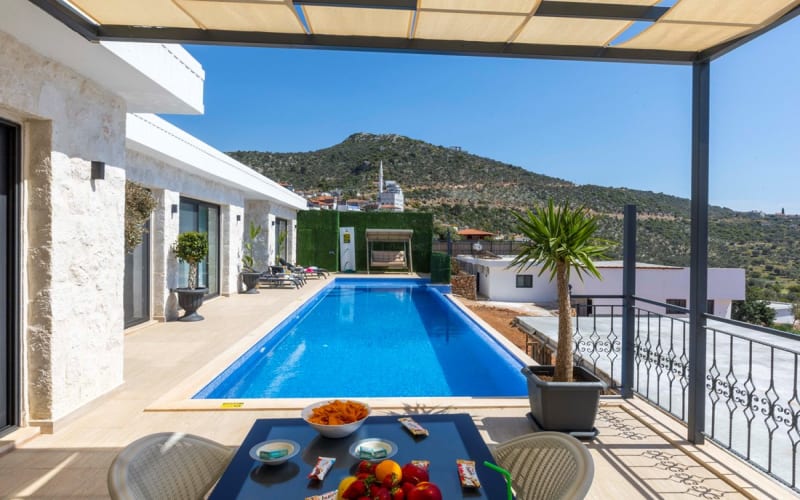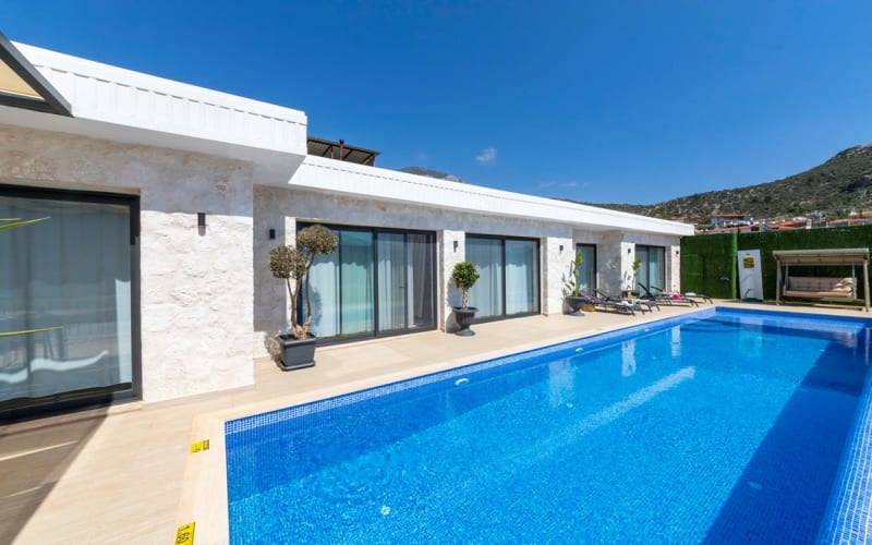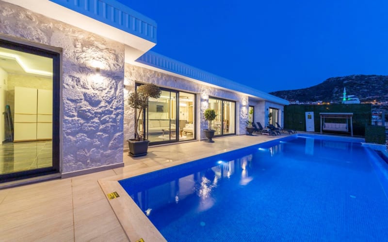 Villa Ladin Exclusive, Kalkan Ulugöl bölgesinde, 2 yatak odalı kiralık villa seçeneklerimizdendir. Villamiz 4 kişi kapasiteli olup kaputaj plajına olan yakınlığıyla doğayı lüksü bir arada sunuyor.Doğa içerisinde yer alan villa Ladin Exclusive,havuz terasından eşsiz doğa manzarasına sahiptir.Villamızın yatak odasında bulunan jakuzisi ile tüm yılın yorgunluğunu atmanıza yardımcı olacaktır. Villa Ladin Exclusive,çekirdek ailelerimiz ve balayı çiftlerimiz için oldukça uygun olup modern ve şık dekore edilmiştir.