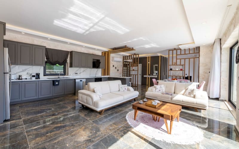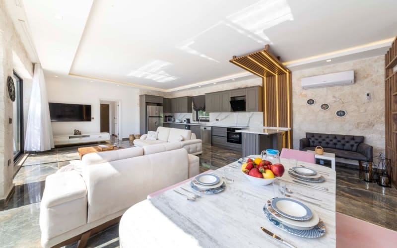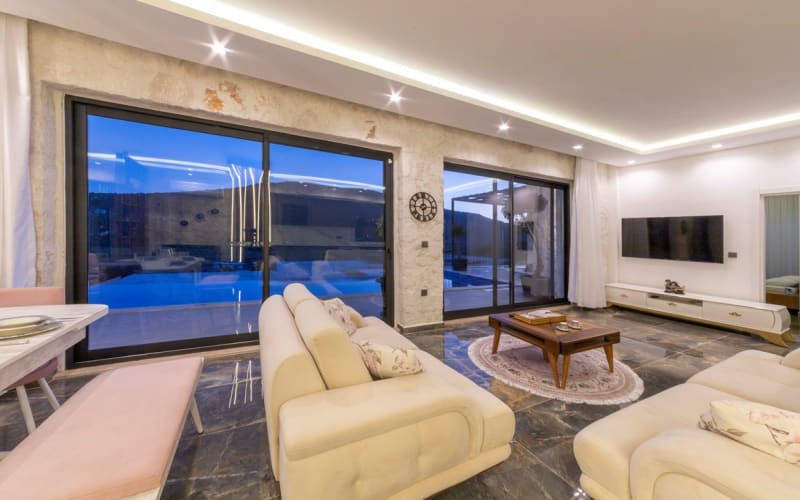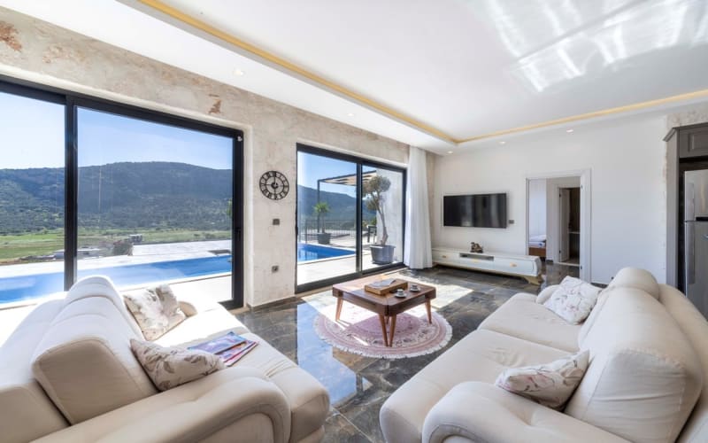 Oturma grubu, klima, televizyon, sehpa, uydu alıcı, internet, bulunmaktadır. Havuz terasına çıkış yapılabilmektedir.