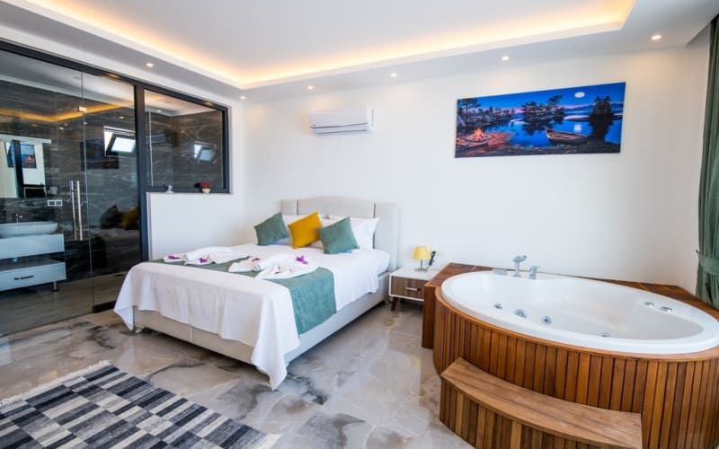 Oda içerisinde özel jakuzisi, geniş ve büyük havuzu, özel çocuk havuzu, muhteşem deniz, şehir ve doğa manzarasına sahip olan tatil villamızda unutulmaz bir tatil keyfi yaşamak için hemen yerinizi ayırtabilirsiniz.