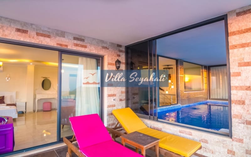8 kişilik kapasitesine sahiptir. Villamız muhafazakar olup havuz terası hiç bir