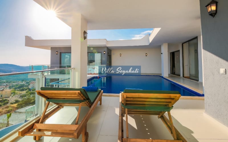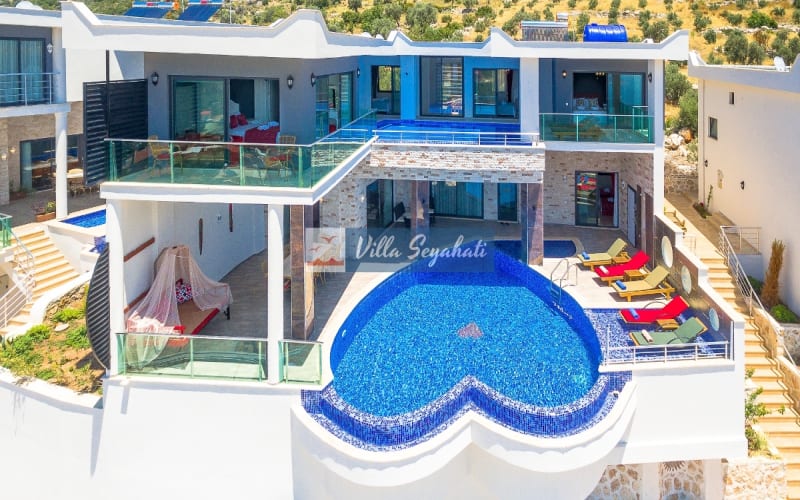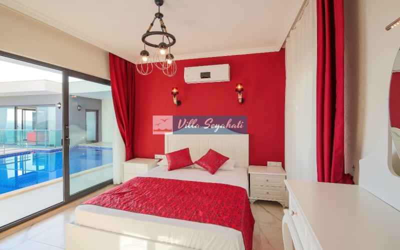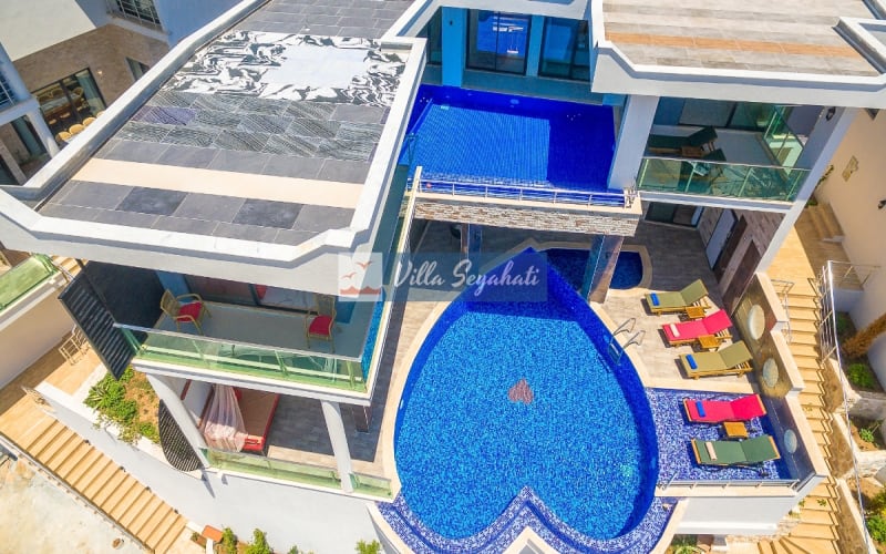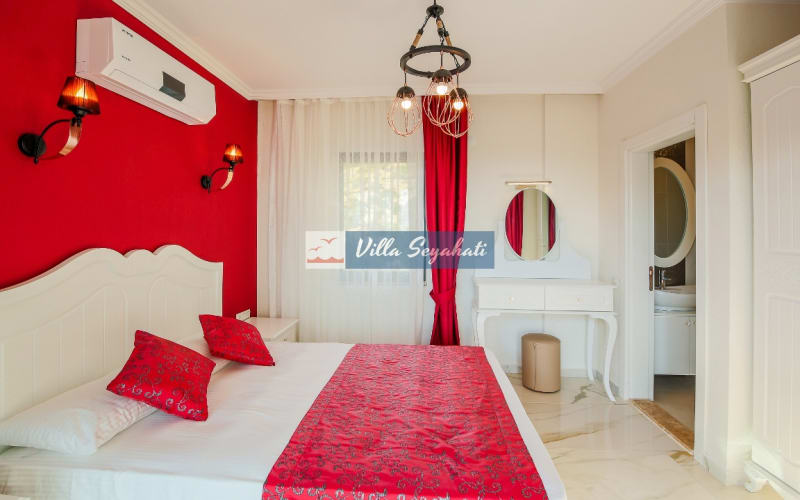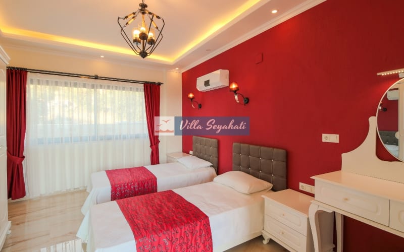 5 yatak odalı ve 10 kişilik kapasiteye sahiptir. Villamızın havuzu dışarıdan