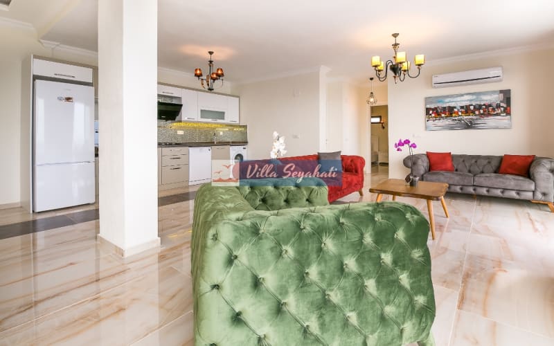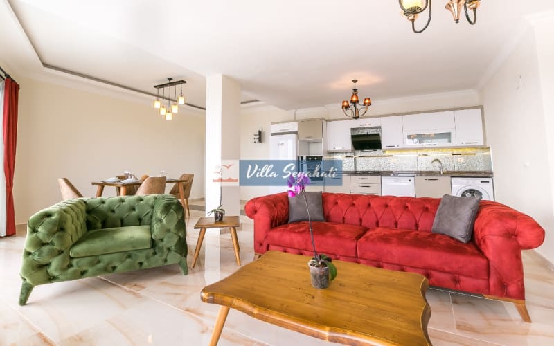 Lüks ve kaliteli mobilyalar kullanılmış tatil evimizin