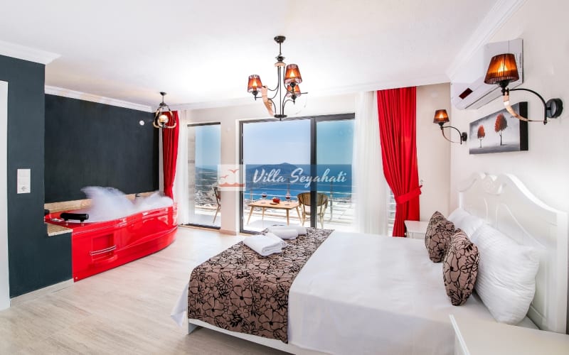 odaya özel jakuzisi, çocuk havuzu, lüks dizaynı ve tüm odalara özel banyo ve