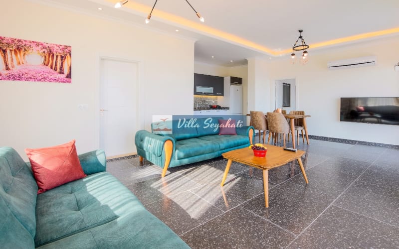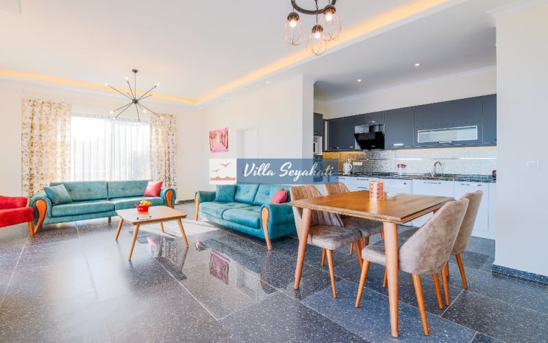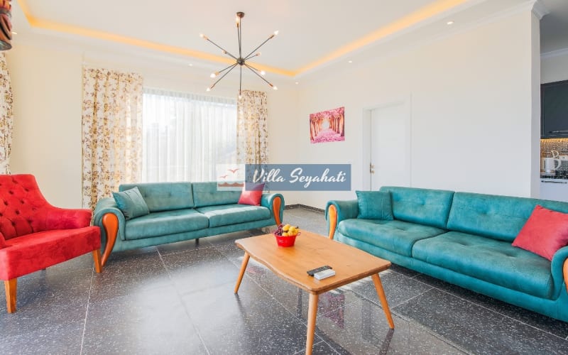 Lüks ve kaliteli mobilyalar kullanılmış tatil evimizin